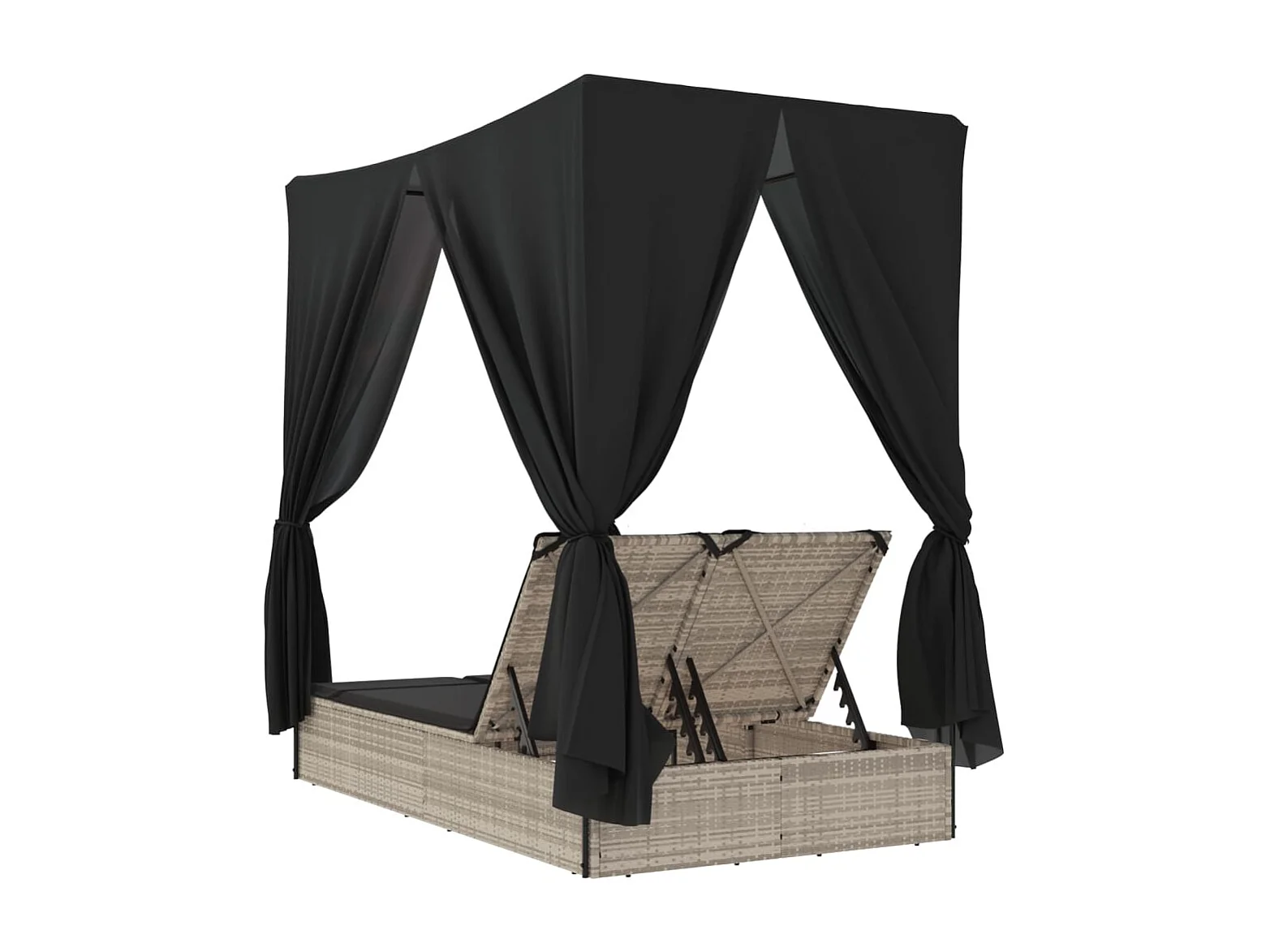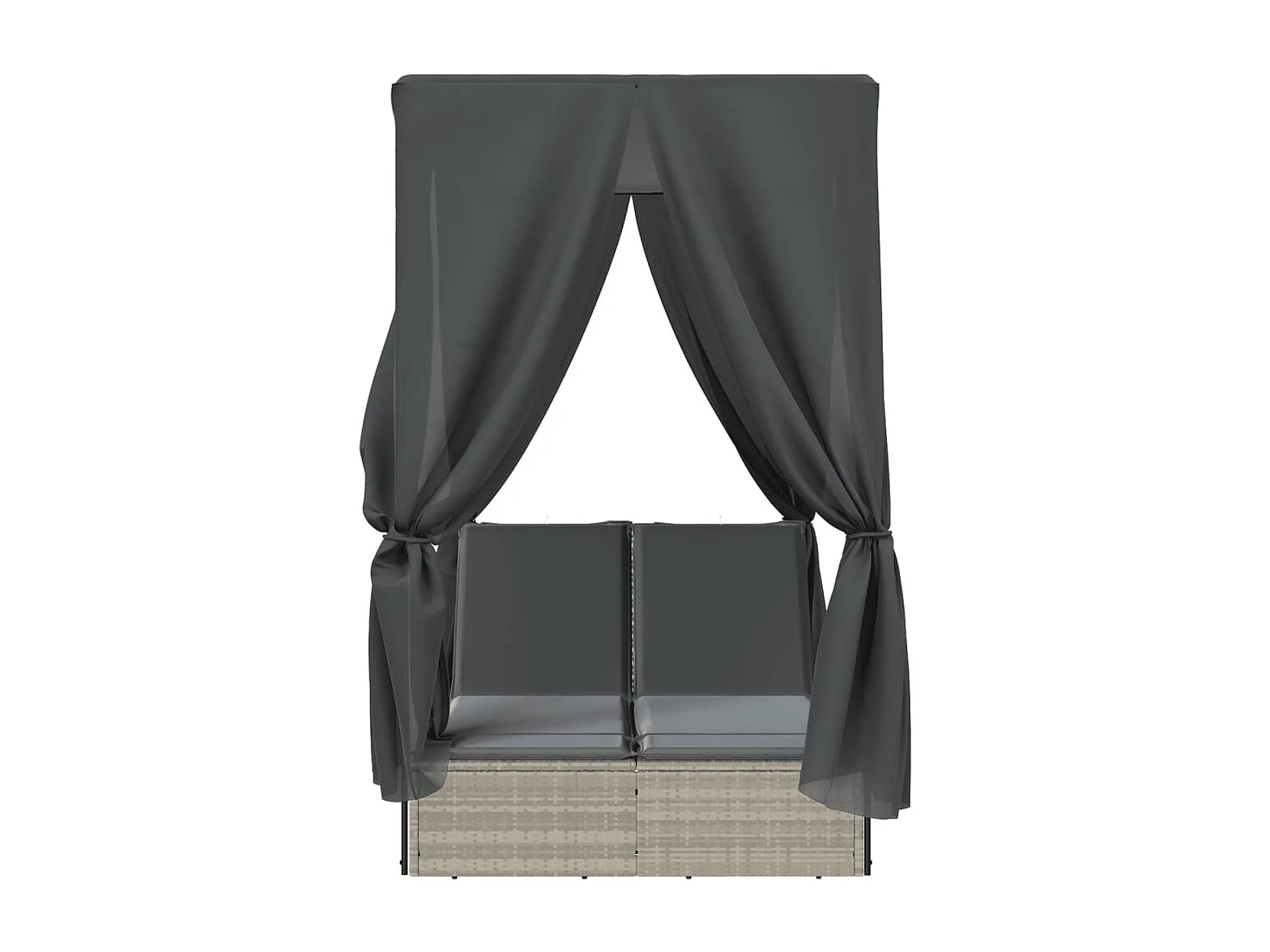 Chaise longue doble con techo y cortinas en ratán sintético gris claro