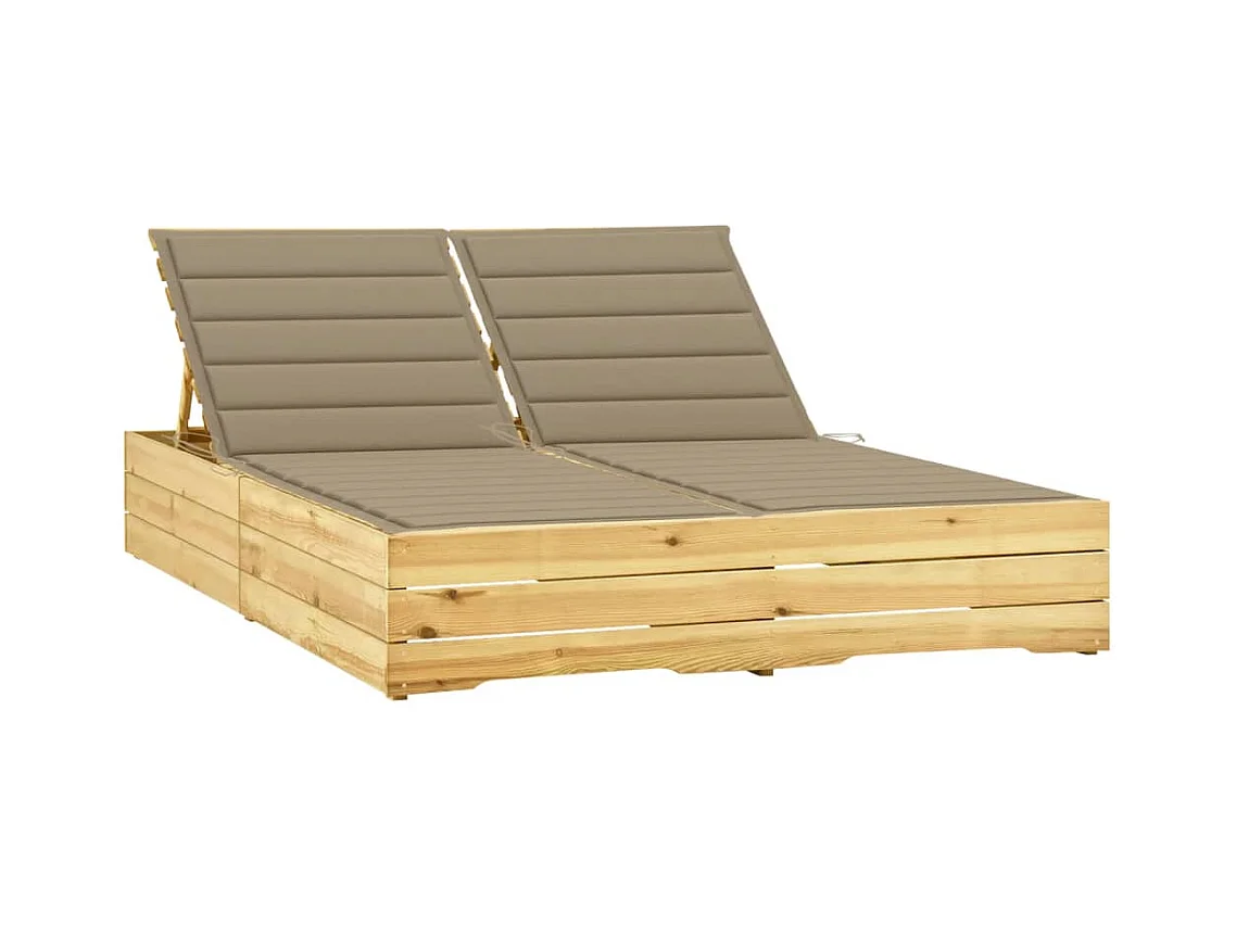 Chaise longue doble y cojines beige Madera de pino impregnada