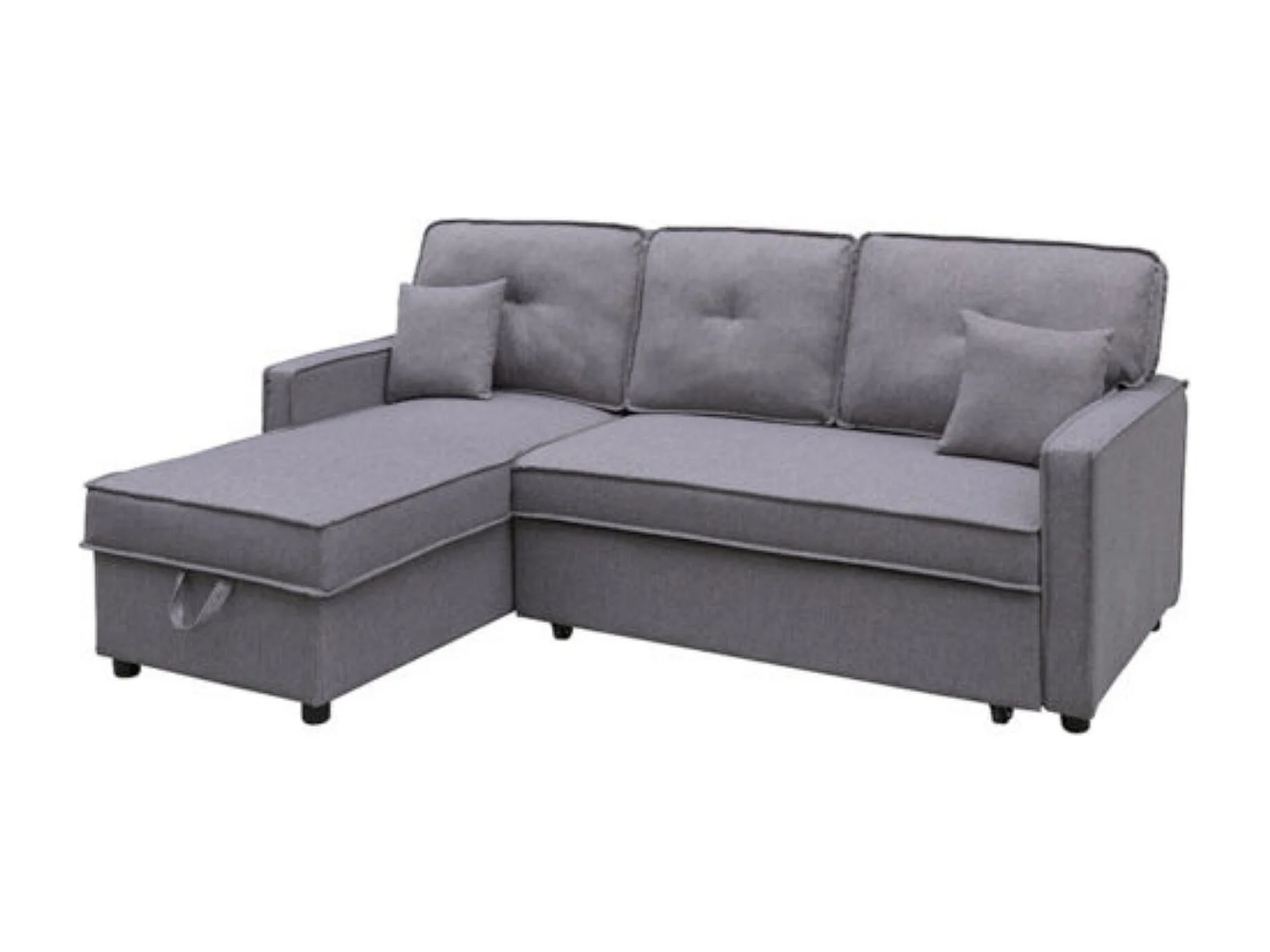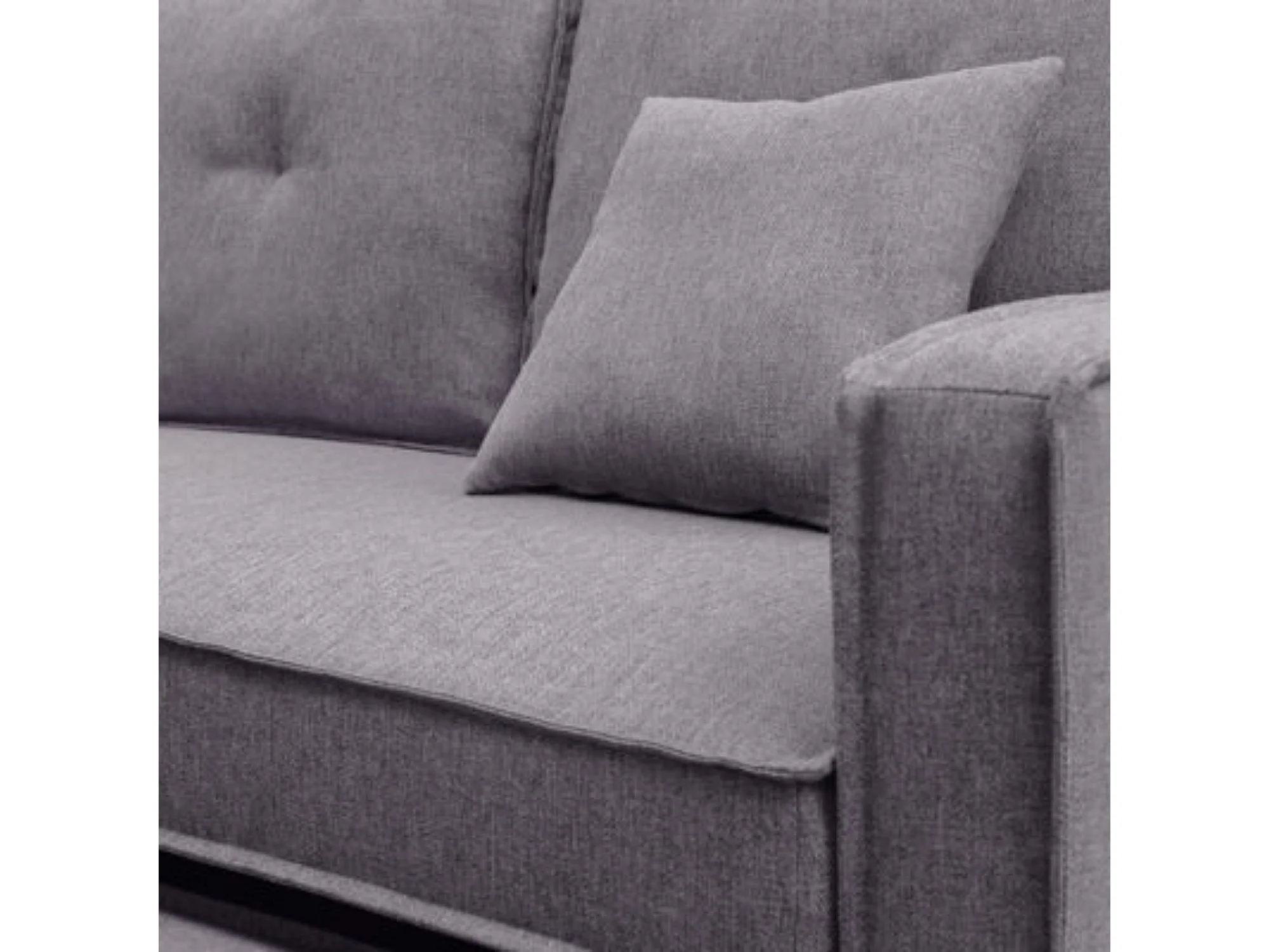 Sofá cama de 2 plazas con almohadas y reposapiés en gris claro