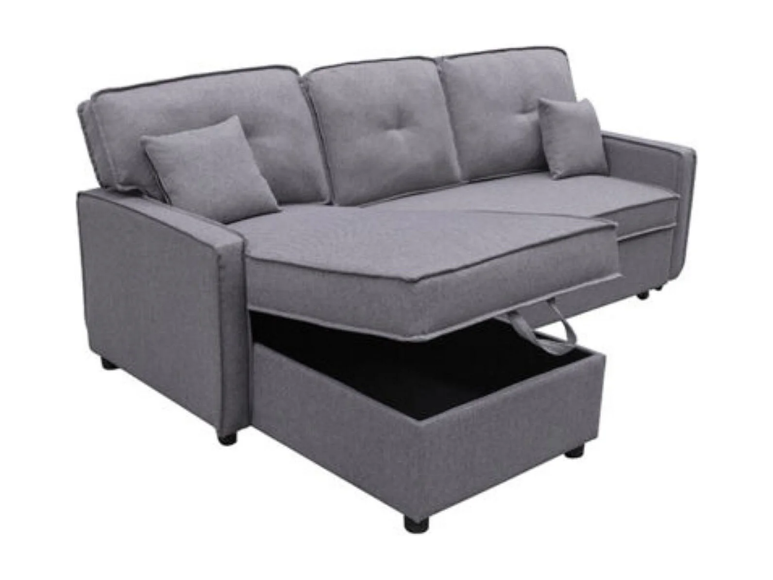 Chaiselongue Cama Convertible con Arcón – Sistema de Arrastre, Tapizado Gris, Montaje Reversible, Estructura Robusta – 202x135x90 cm
