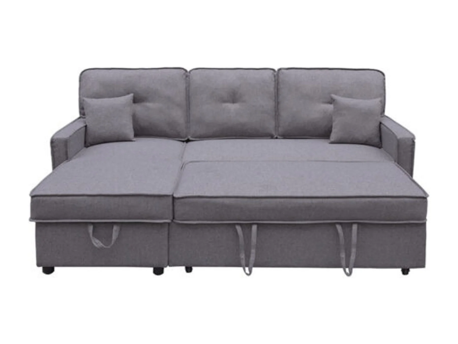 Sofá Cama 3 Plazas con Reposabrazos – Convertible con Sistema de Arrastre, Tapizado Gris Moderno, Estructura Robusta – 210x85x90 cm