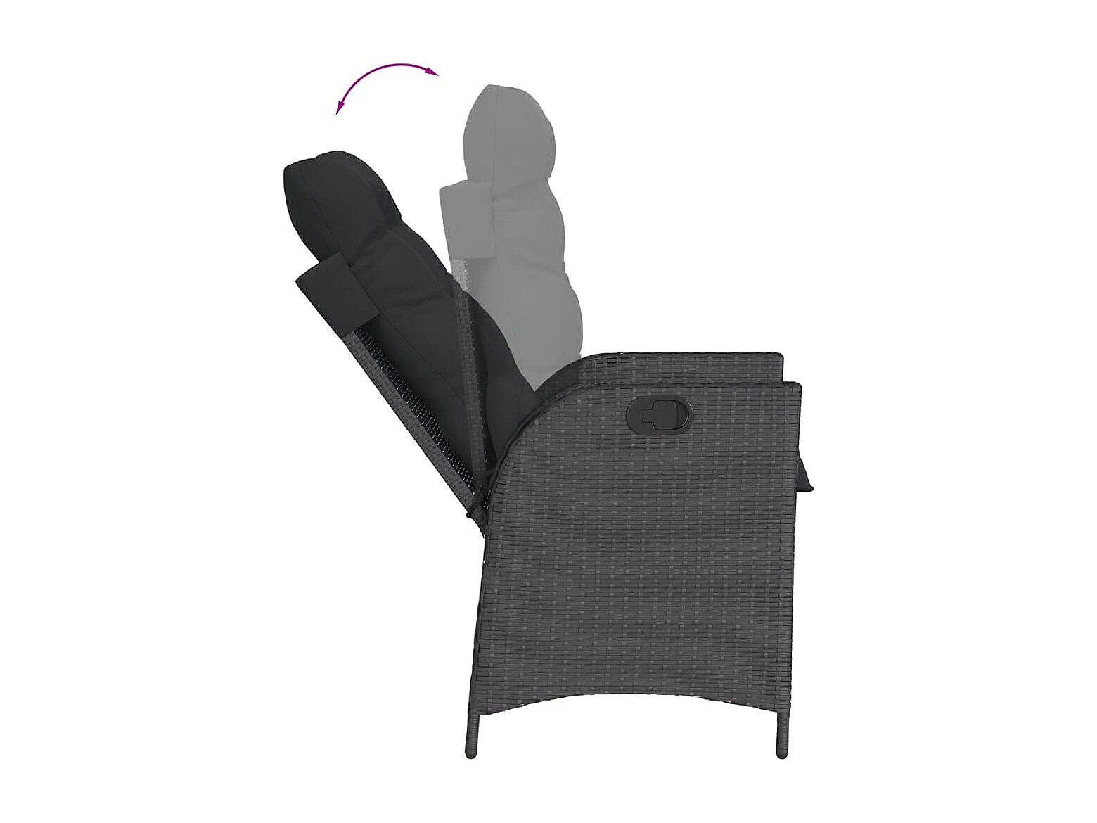 Vrikja Set de comedor de jardín 9 pzas y cojines ratán sintético negro