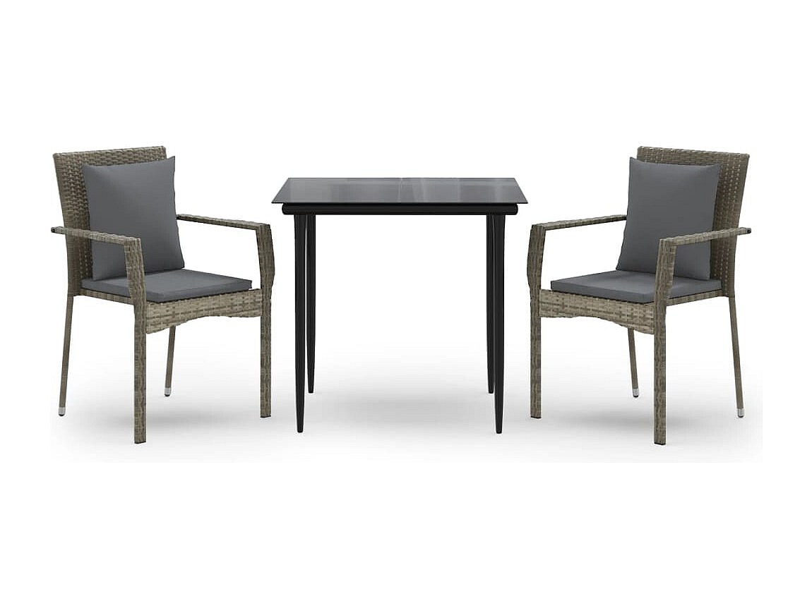 Vernon Juego de comedor de jardín 3 piezas con cojines gris y negro