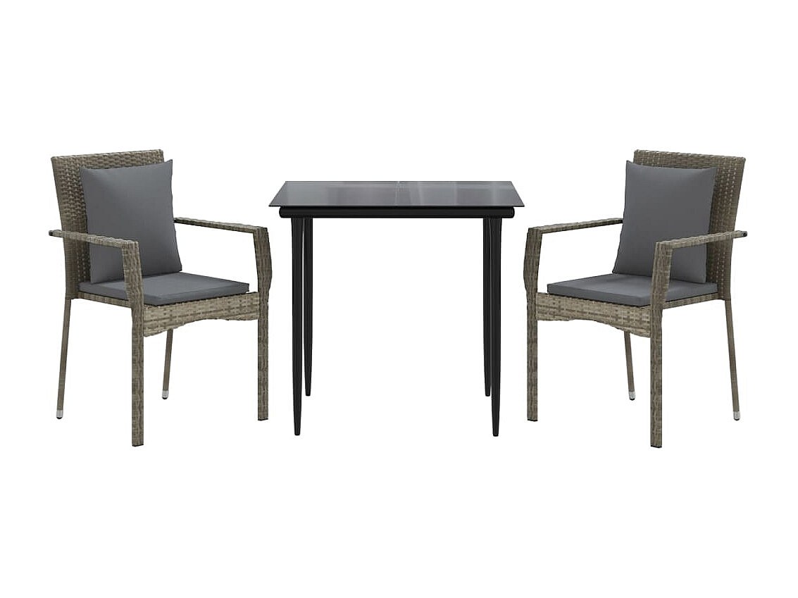 Zyldr Set comedor jardín 3 pzas y cojines ratán sintético negro gris