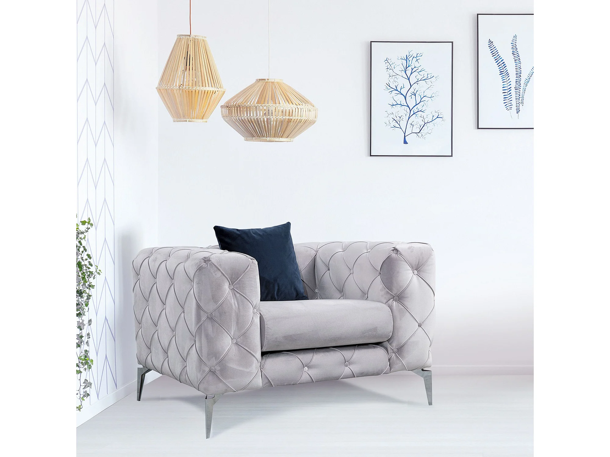Sillón Herakles acolchado de terciopelo gris oscuro y patas cromadas 108 cm