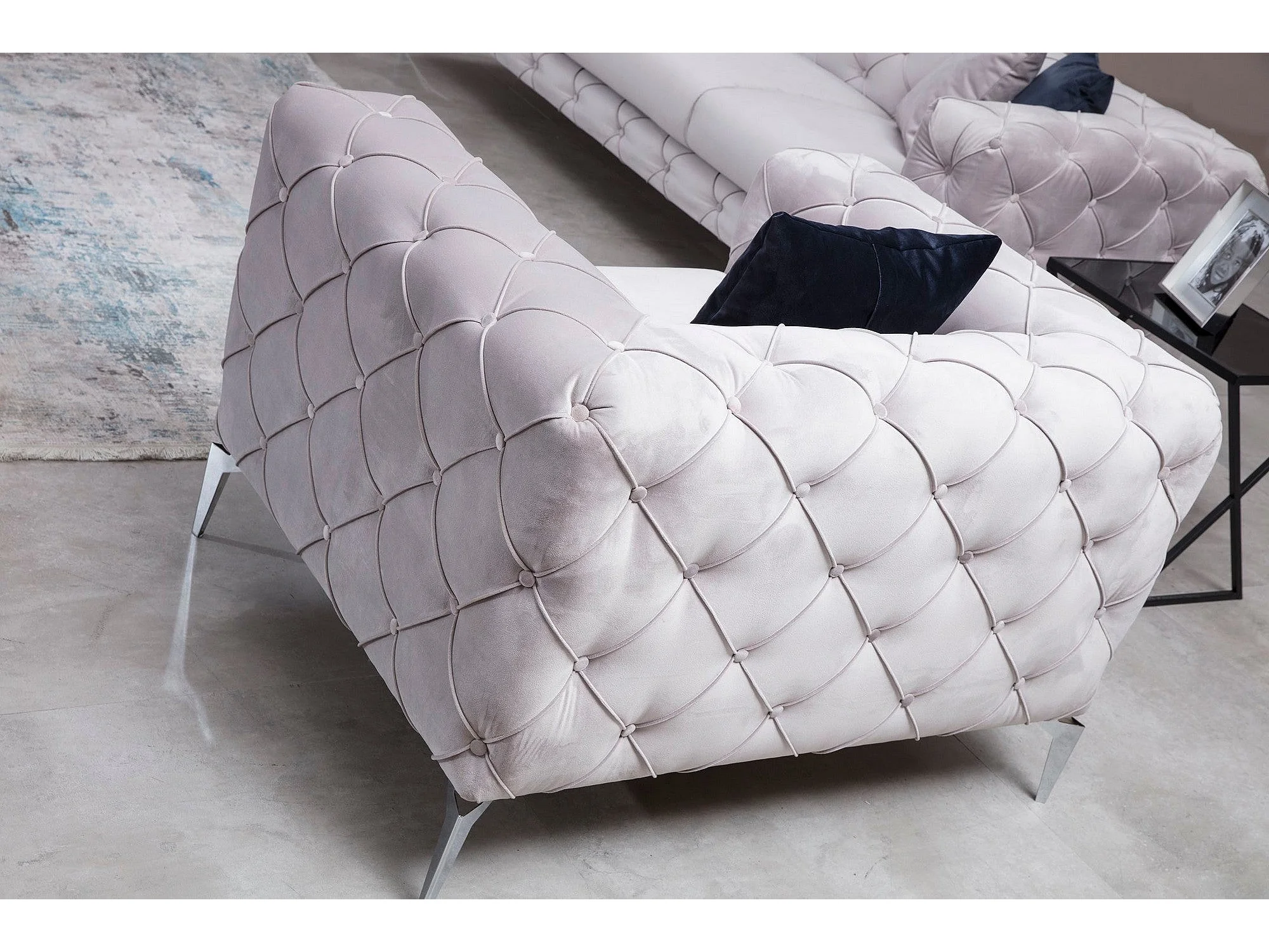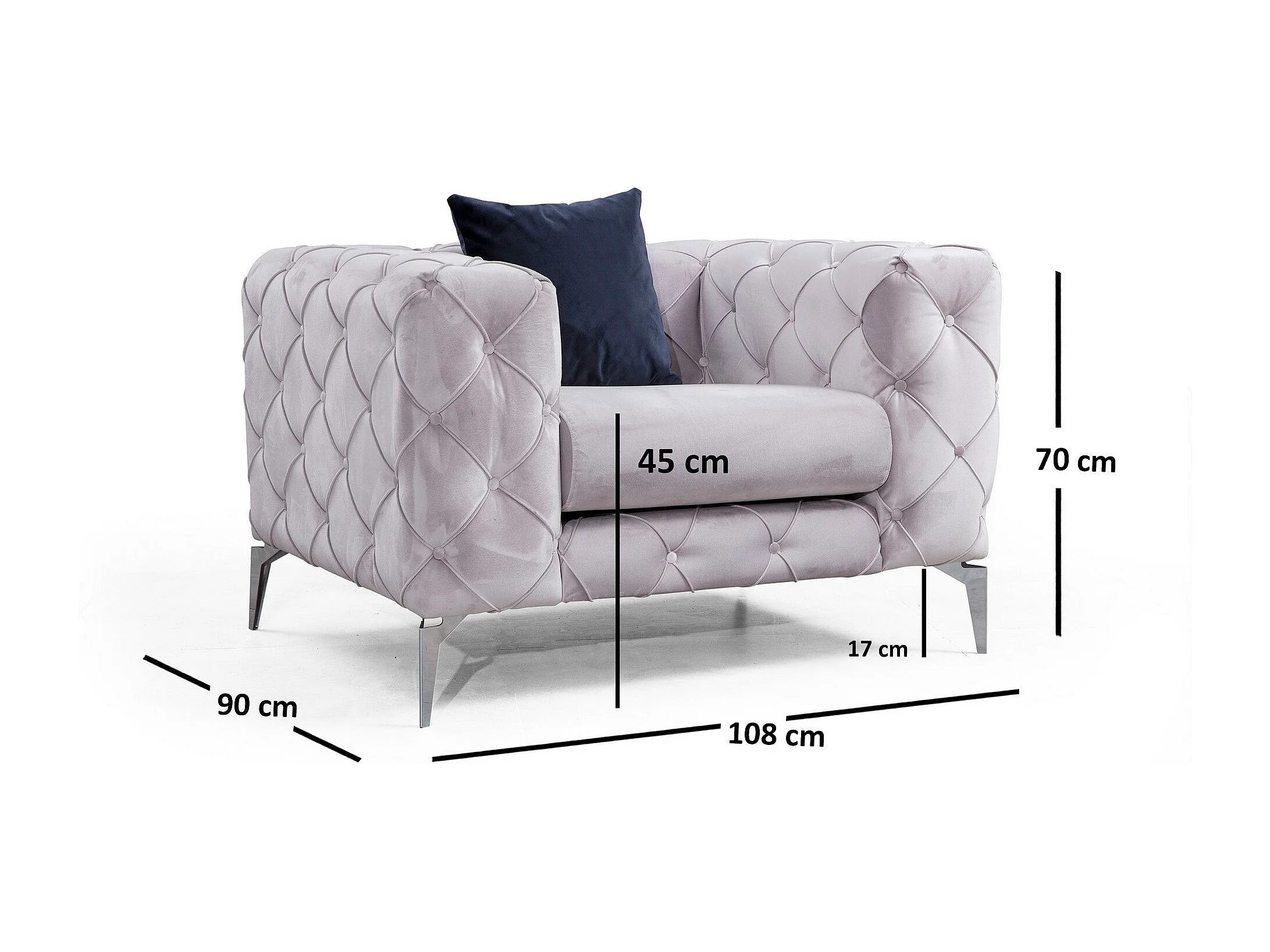 Chesterfield sillón Altadena 358, Gris, 70x108x90cm, Tapiz, Patas: Metal