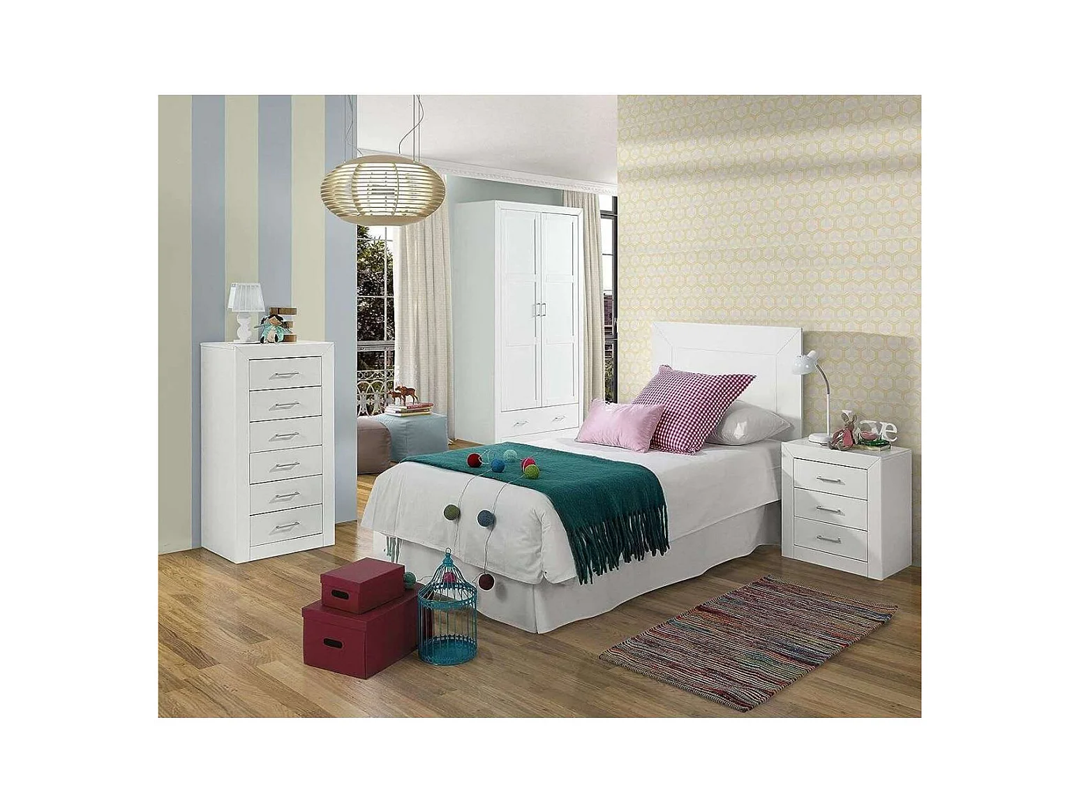 Sinfonier de Noche Berna de 4 cajones en Blanco y cajones en Blanco, Pino macizo