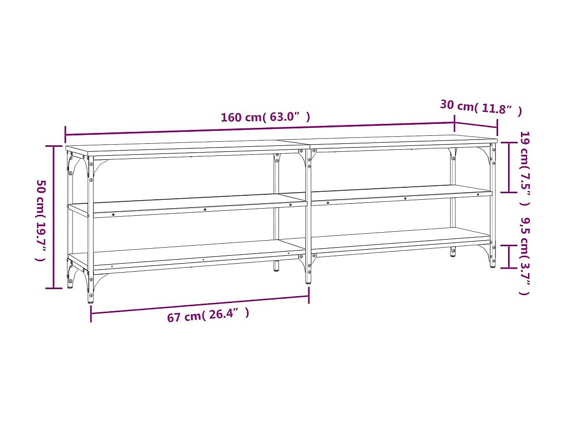 Chiloquin Mueble de TV madera contrachapada gris Sonoma 160x30x50 cm