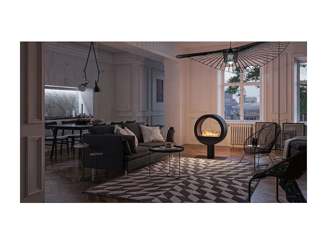 Chimenea de bioetanol de encimera Incycle Stand de 2 lados - Diseño circular con doble fachada de 70 cm de diámetro