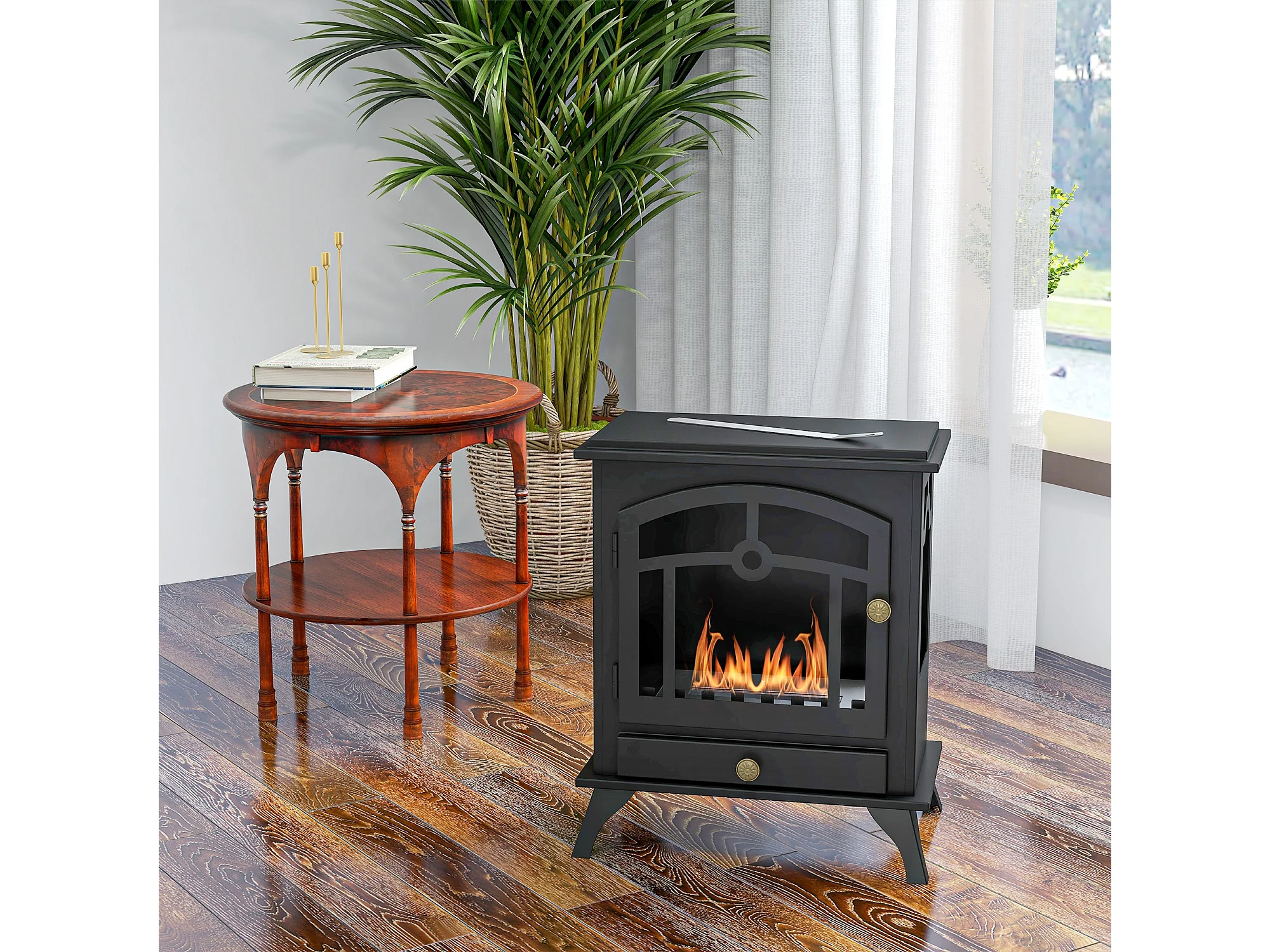 Estufa de etanol en acero negro con puerta corredera de cristal templado