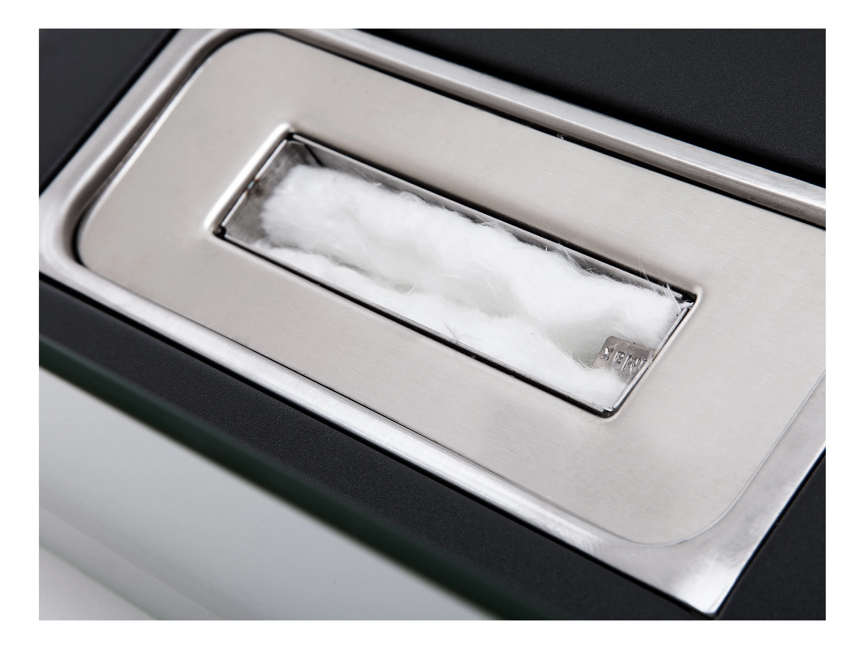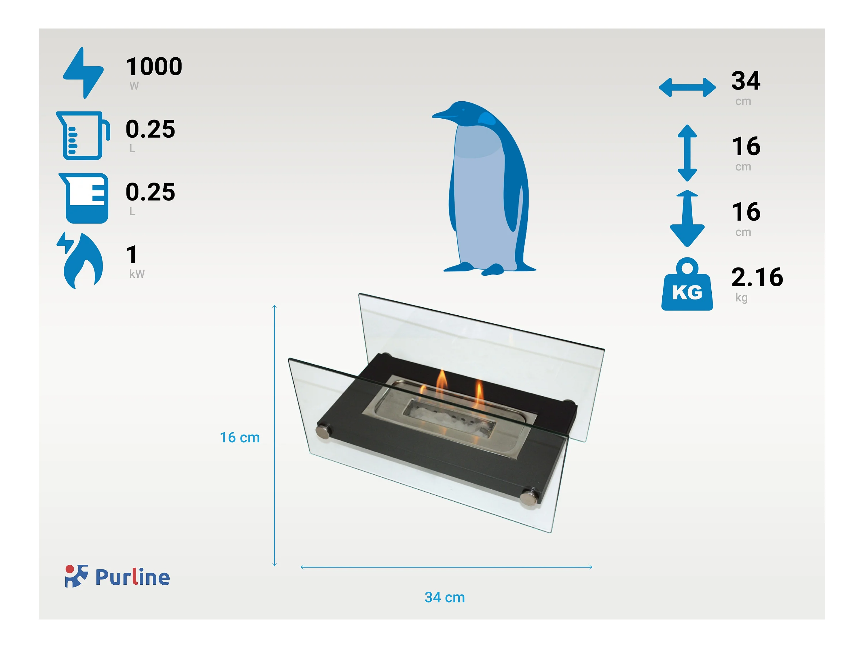 Estufa de etanol en acero negro con puerta corredera de cristal templado