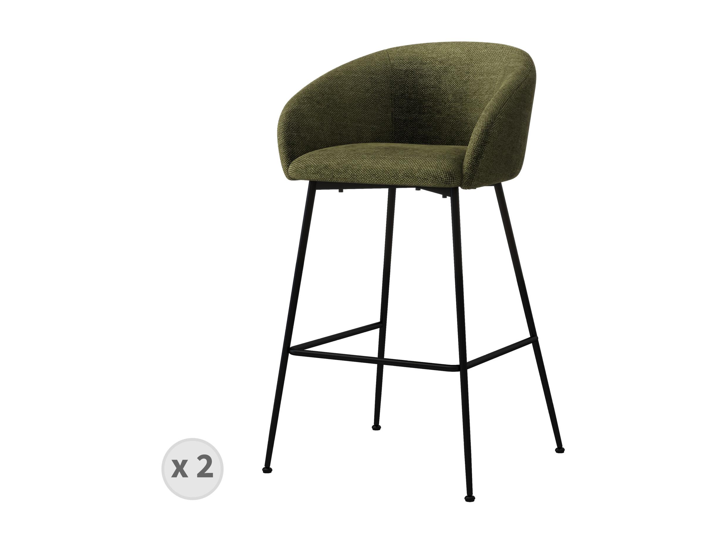 LEA-Taburete de bar de tela verde y metal negro (x2)