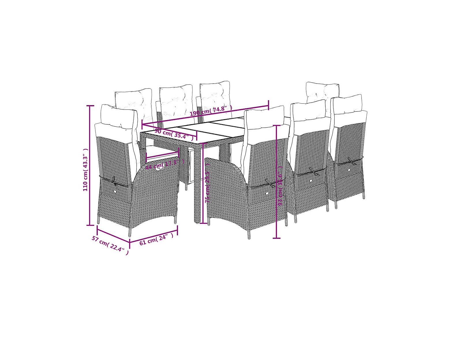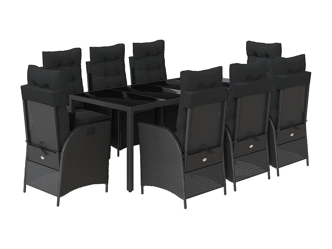 Garden Furniture - Set de comedor de jardín 9 pzas y cojines ratán sintético negro