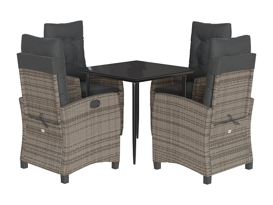 Garden Furniture - Set comedor de jardín 5 piezas con cojines ratán sintético gris
