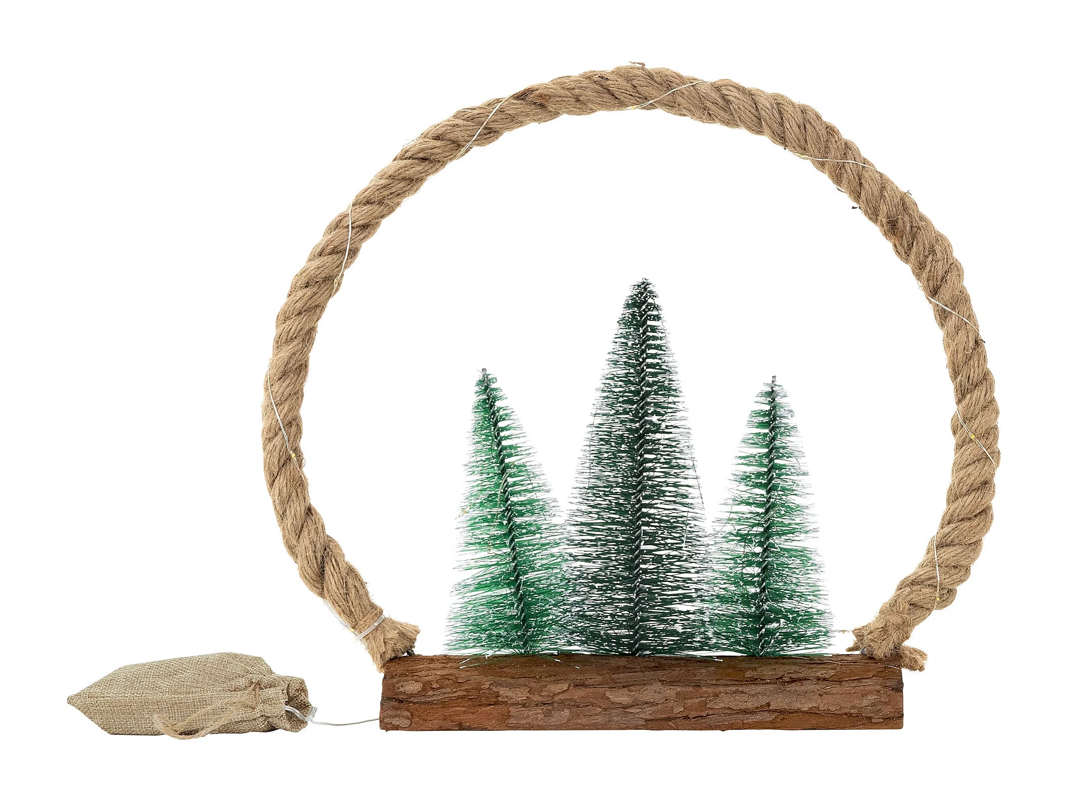 Círculo de yute colgante con 3 abetos 30LEDs decoración interior navidad a pilas