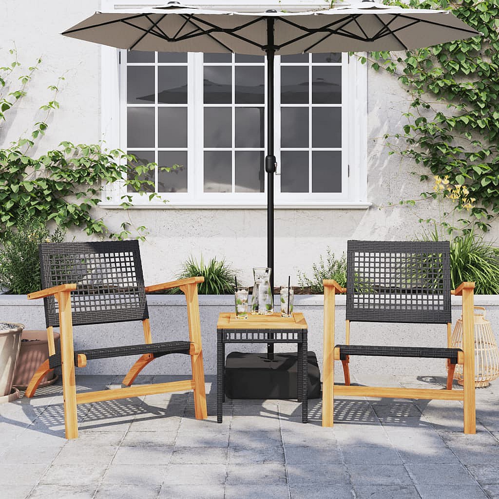 Conjunto Muebles de Jardín Ambar 3 Piezas Negro, Mesa y 2 sillas