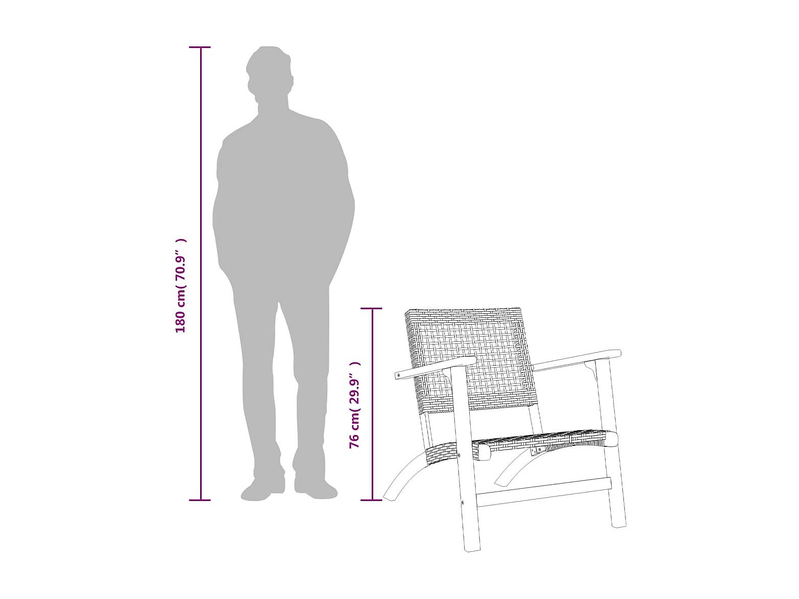 Claire-Émilie Sillas de jardín 2 uds madera de acacia y ratán sintético negro