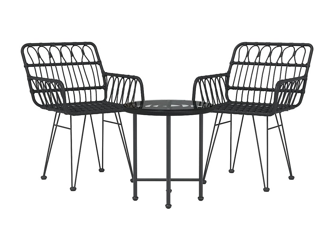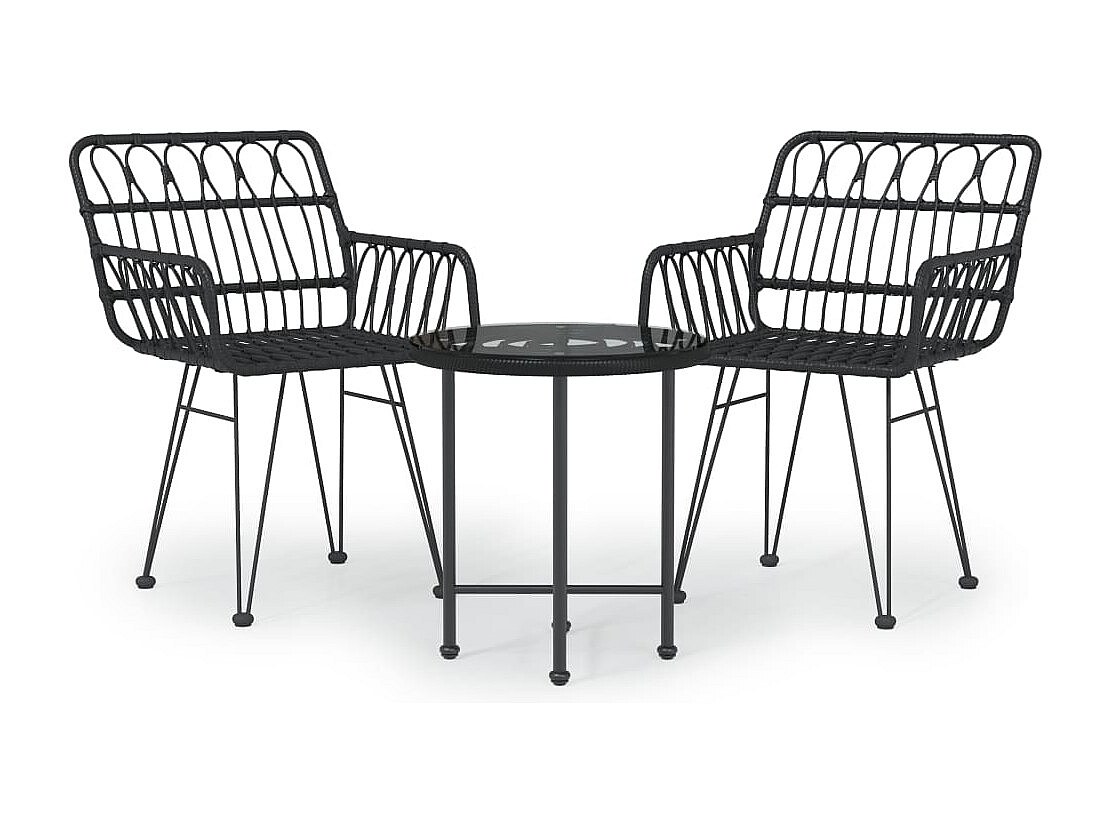 Claire-Sylvaine Juego de comedor de jardín 3 piezas ratán sintético negro