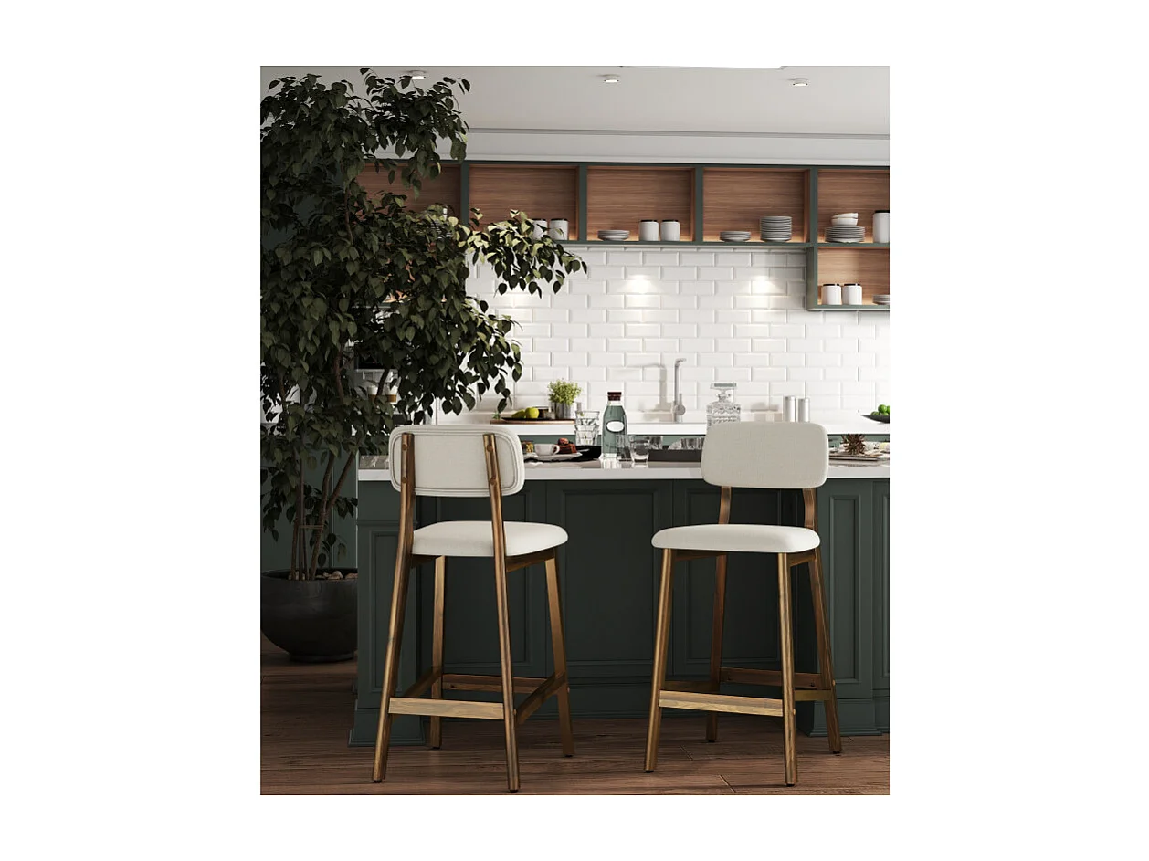CLIFF-Taburete de bar, tela Ecru y madera de nogal (x2)