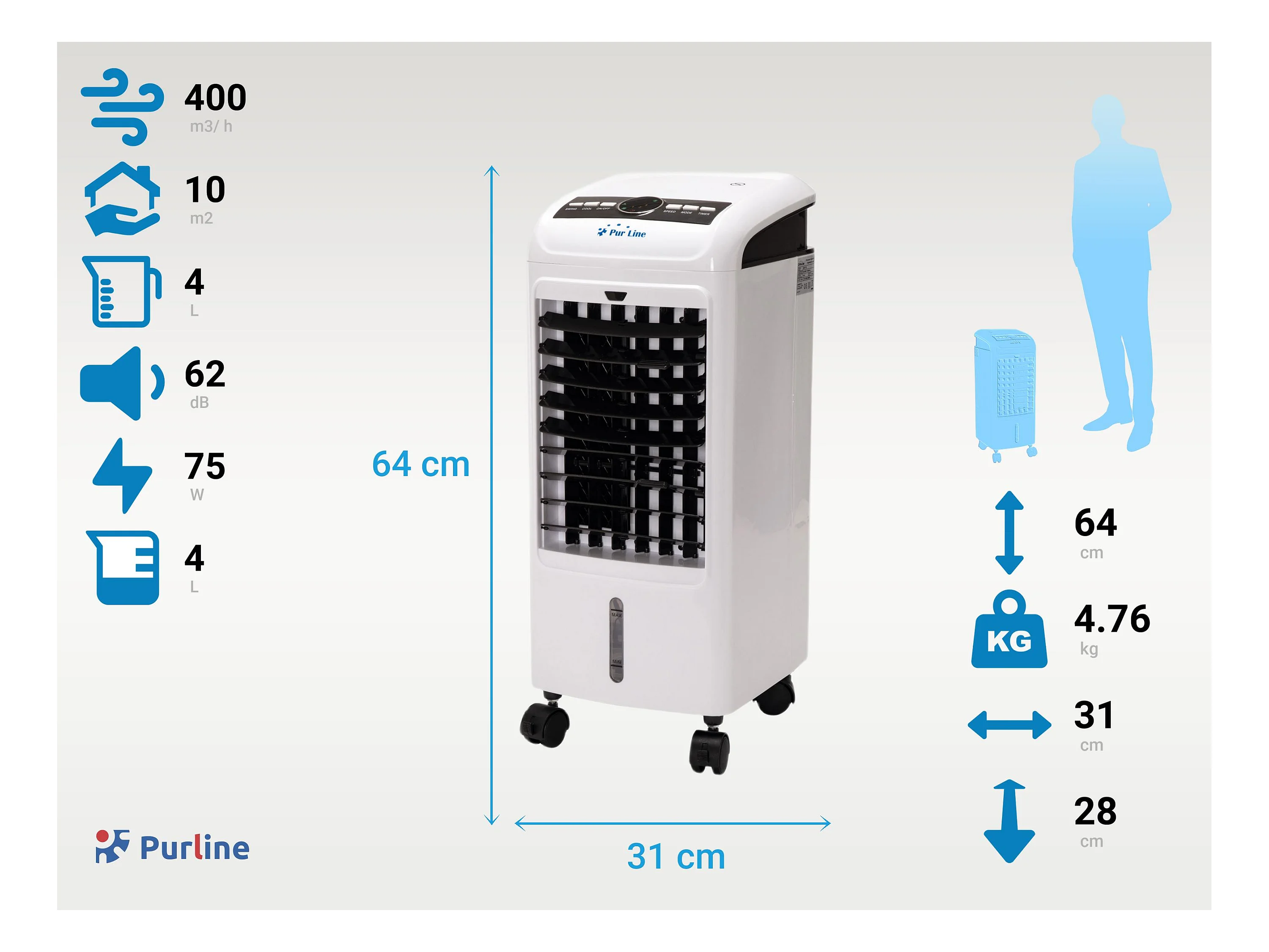 Climatizador evaporativo 75W 3 velocidades y 4L