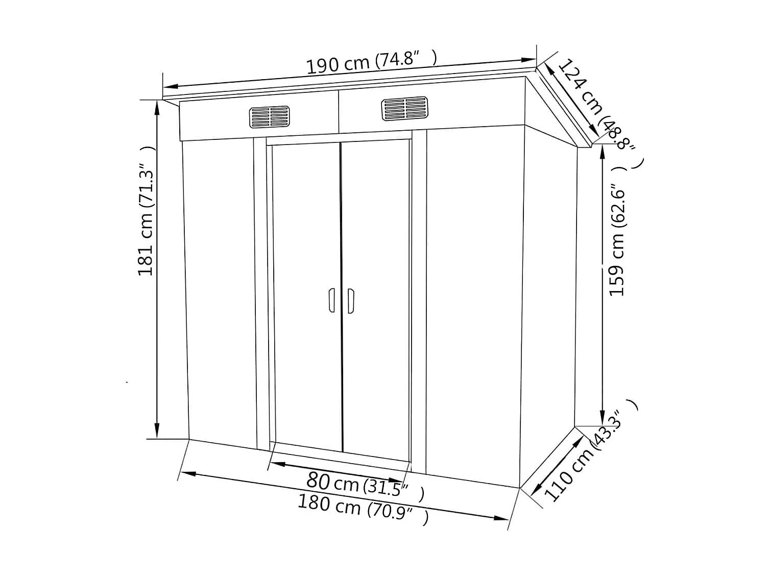 Cobertizo de jardín de metal 5,29㎡ 277 x 191 x 202 cm con 2 puertas correderas con cerradura 4 orificios de ventilación para bicicleta gris 20_0007629