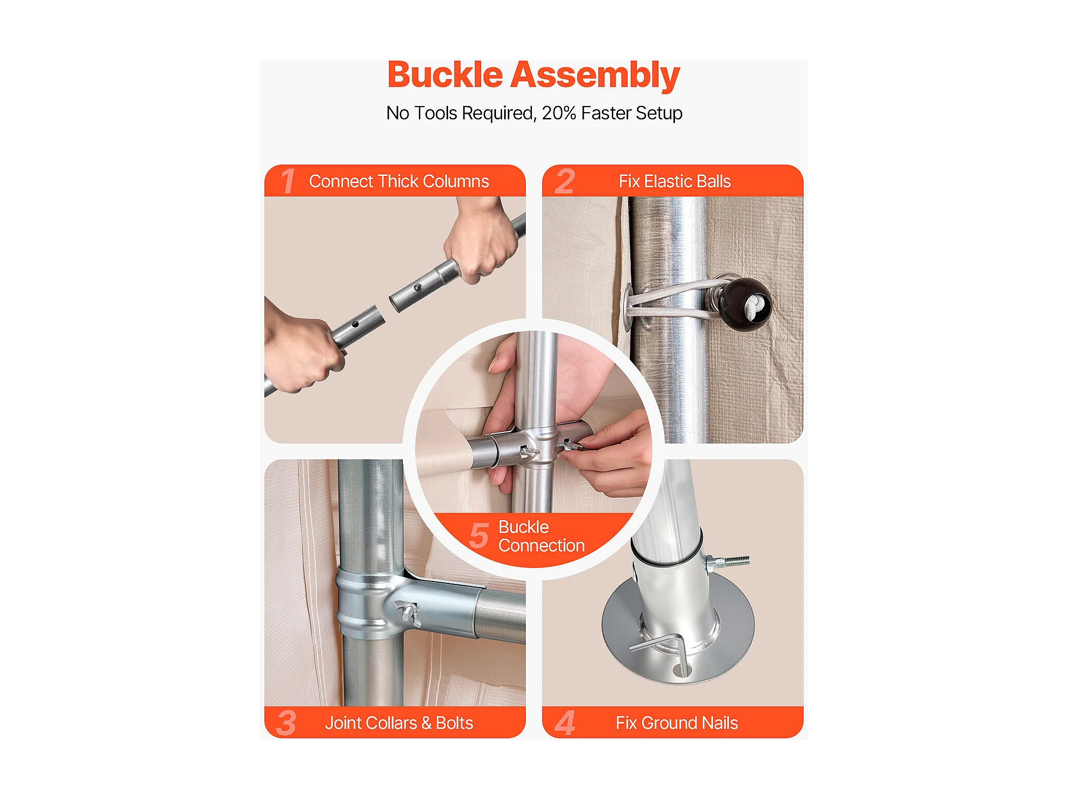 Cobertizo de Jardín SucceBuy, 305 x 458 cm, Tienda de Almacenamiento, con Doble Puerta Enrollable con Cremallera, Garaje Exterior para Motos, Bicicletas, Beige