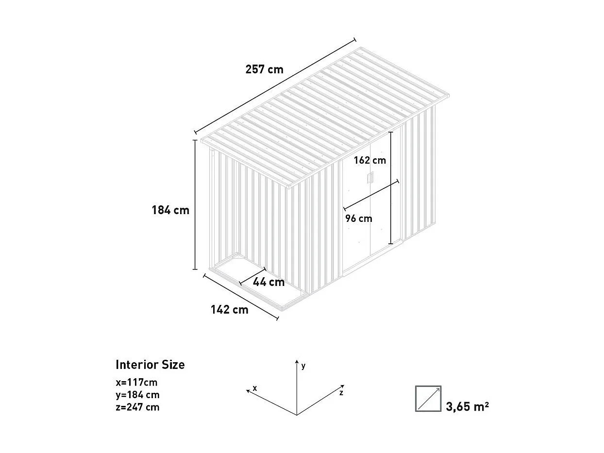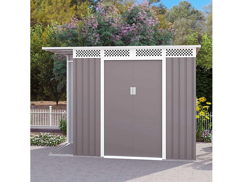 Cobertizo de jardín Tyrol de chapa galvanizada gris caseta de herramientas 257X142x184cm
