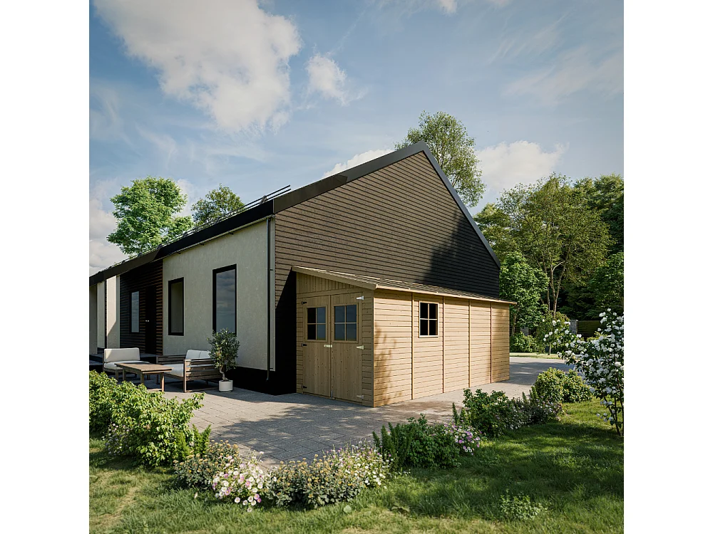 Cobertizo de madera con pared lateral con suelo tratado - 10.1m² - M341A+M341G
