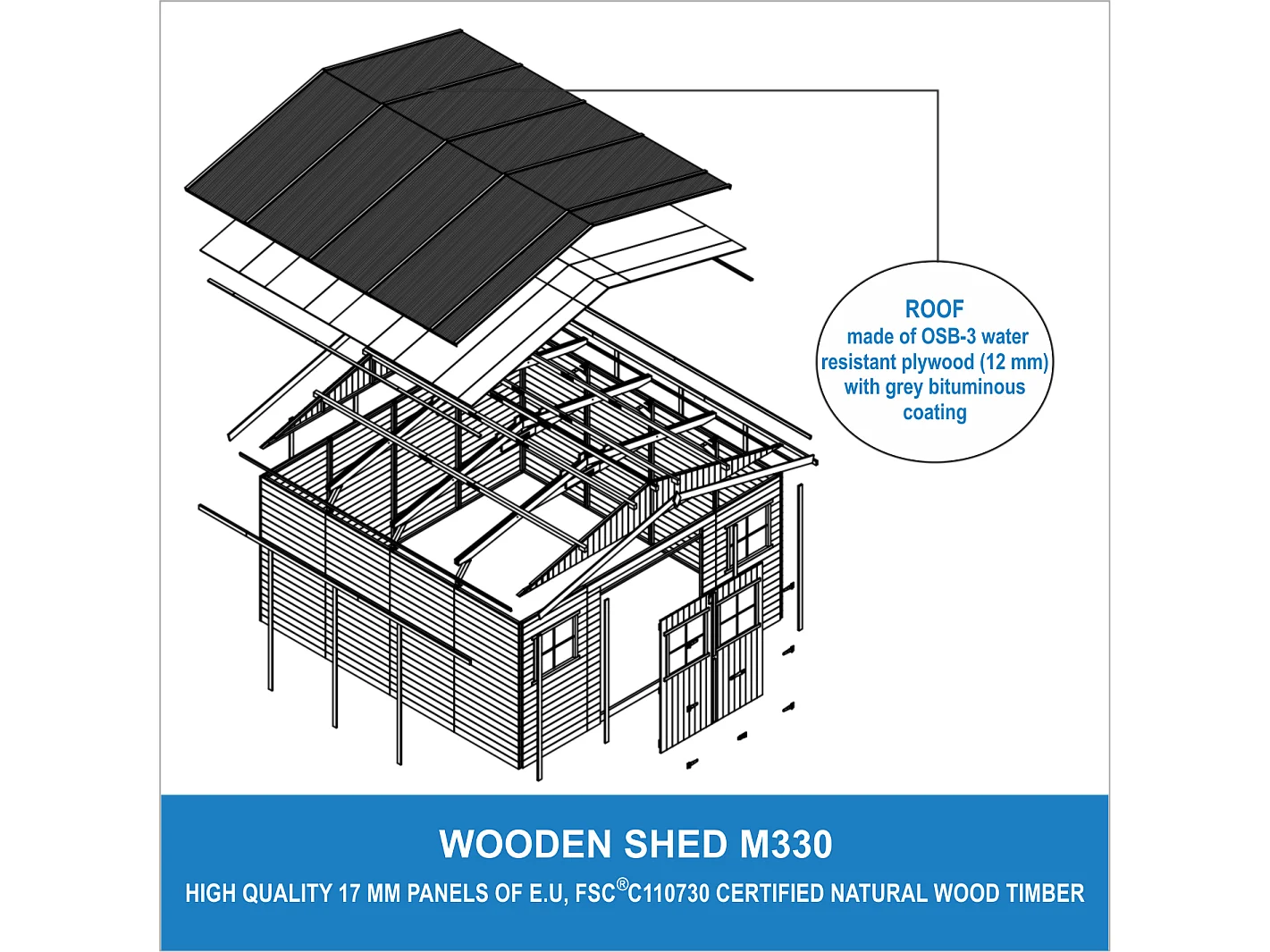 Cobertizo de madera para jardín - A246x418x420 cm/16m² - M330