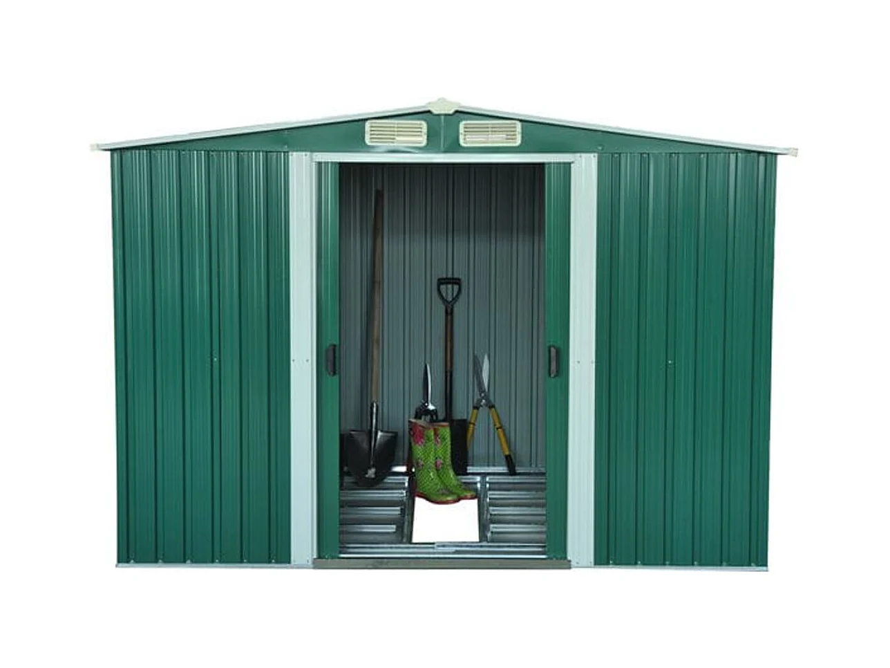 Klavs Cobertizo jardín tejado alargado acero verde 277x107x181 cm