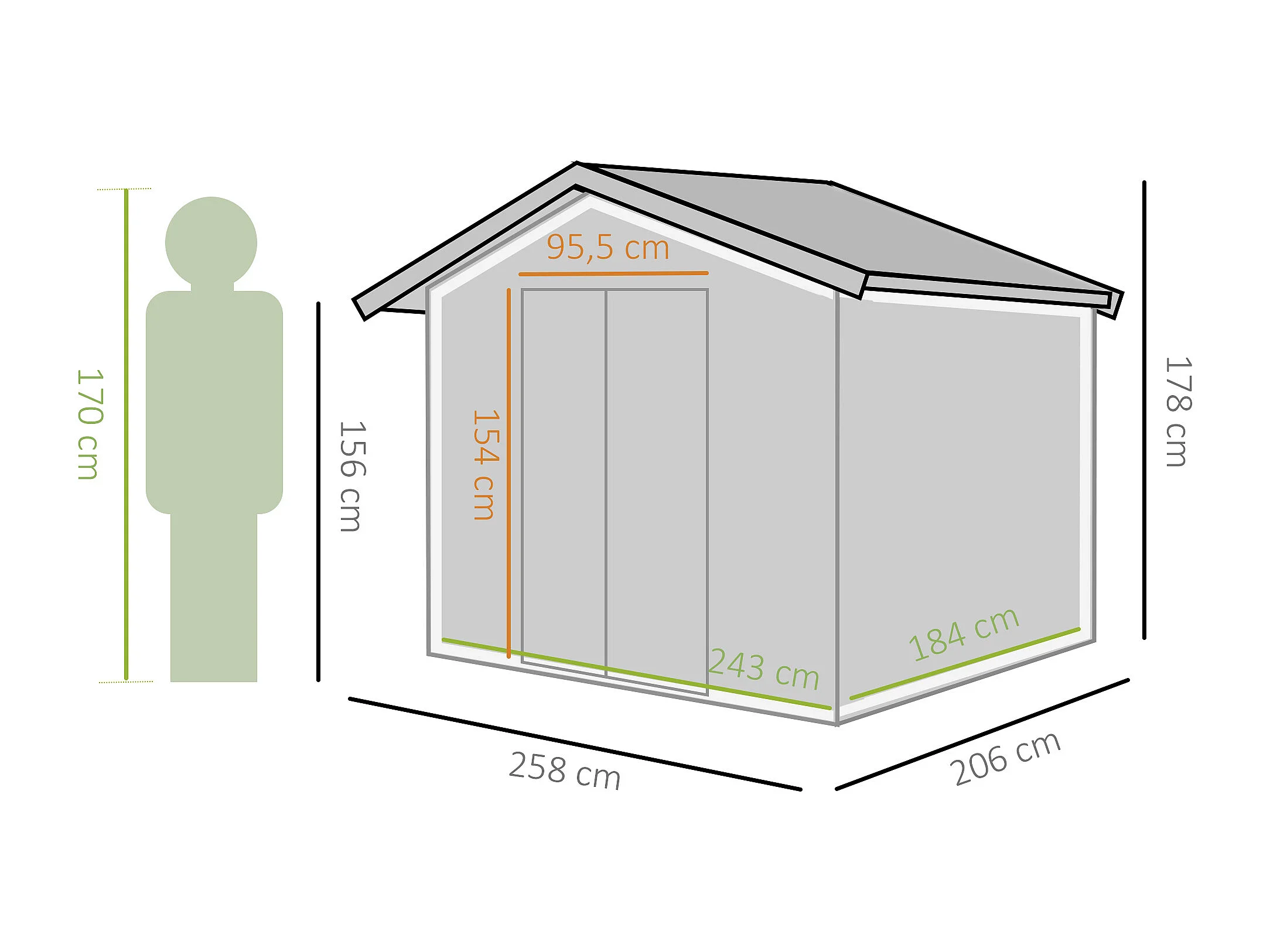 Caseta de jardín verde oscuro 258x206x178 cm Outsunny