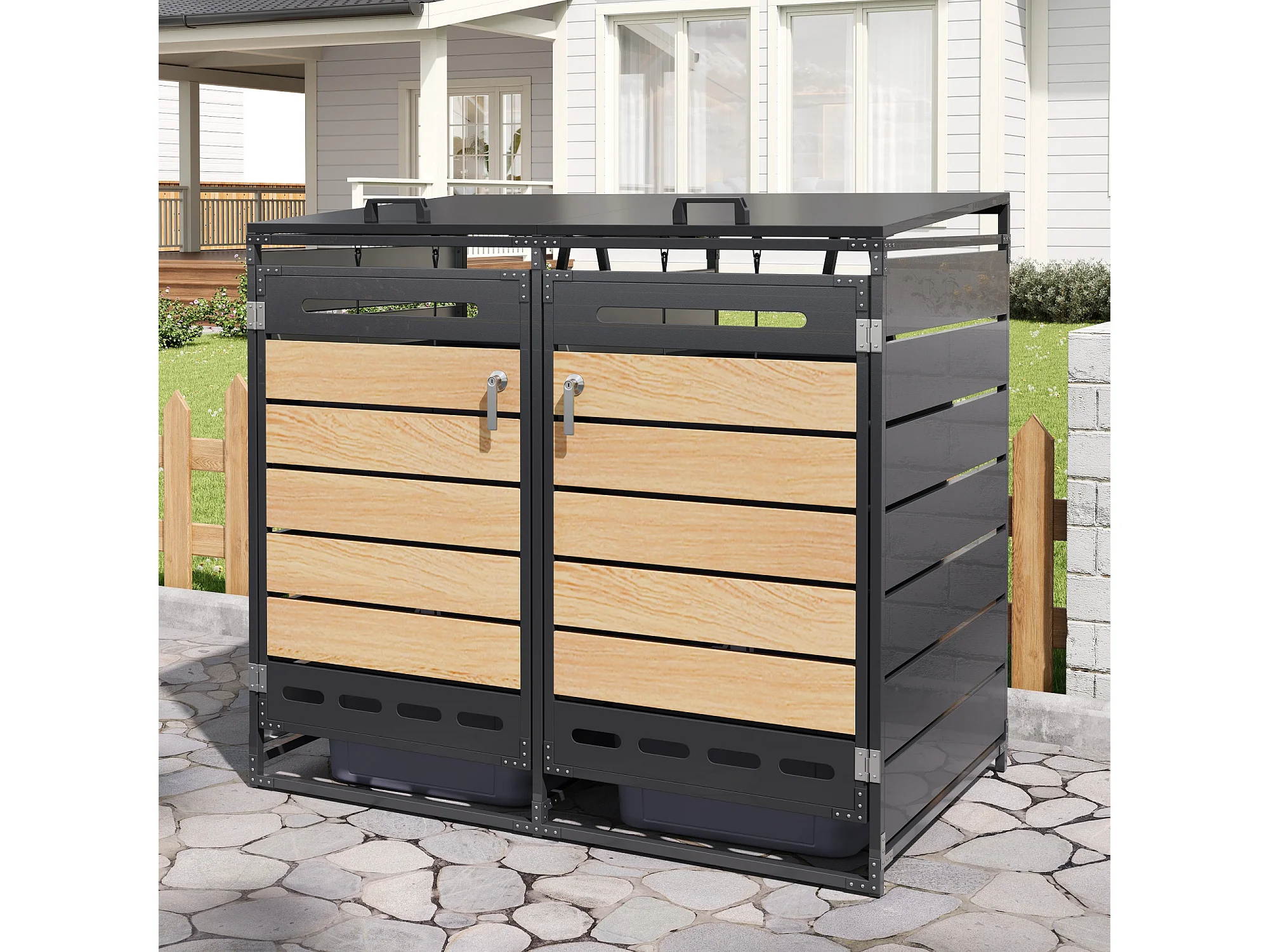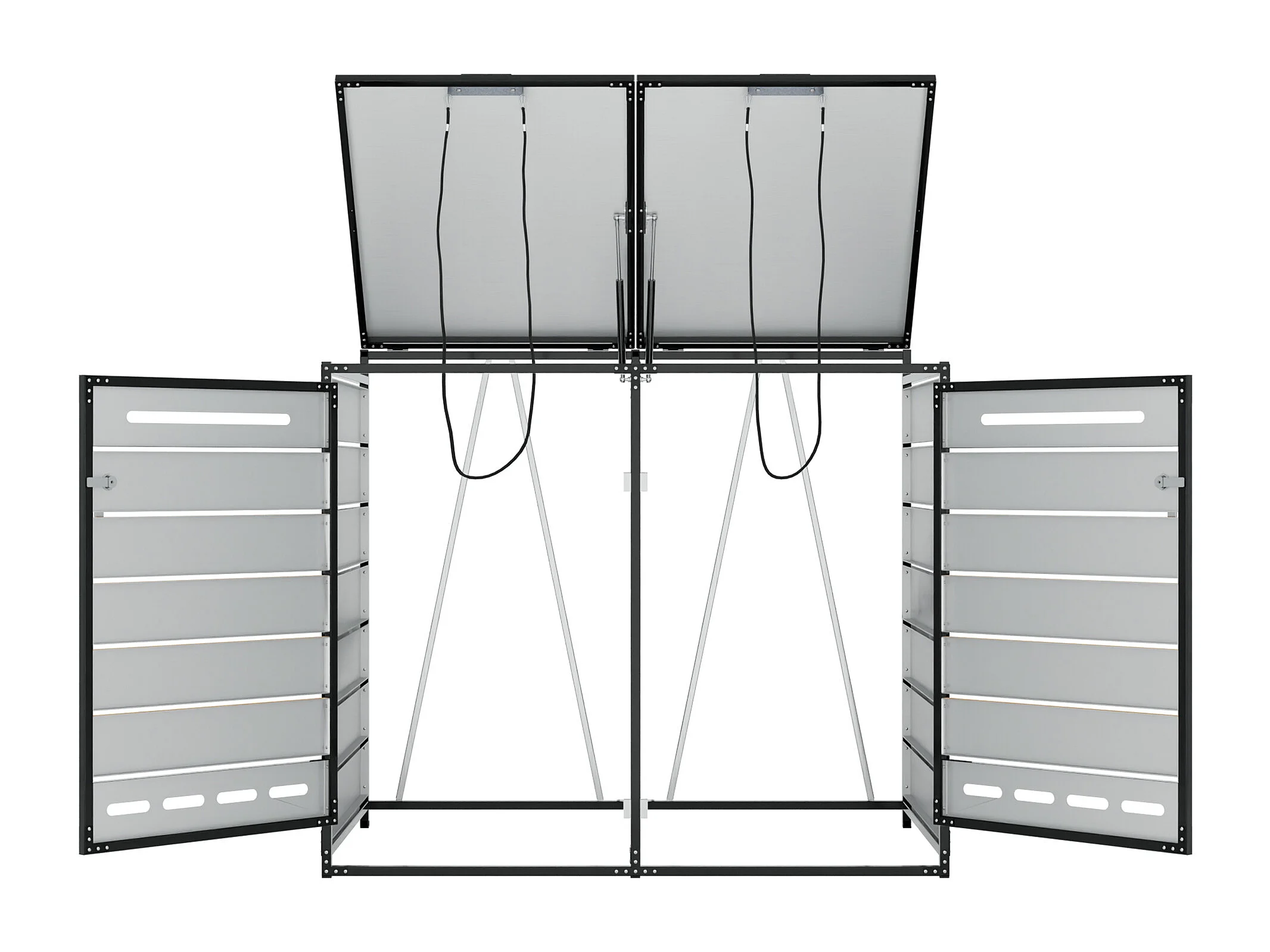 Cobertizo para 2 contenedores de jardín - 131 x 79 x 116 cm - con tapa hidráulica + cerradura + 2 puertas - metal - negro