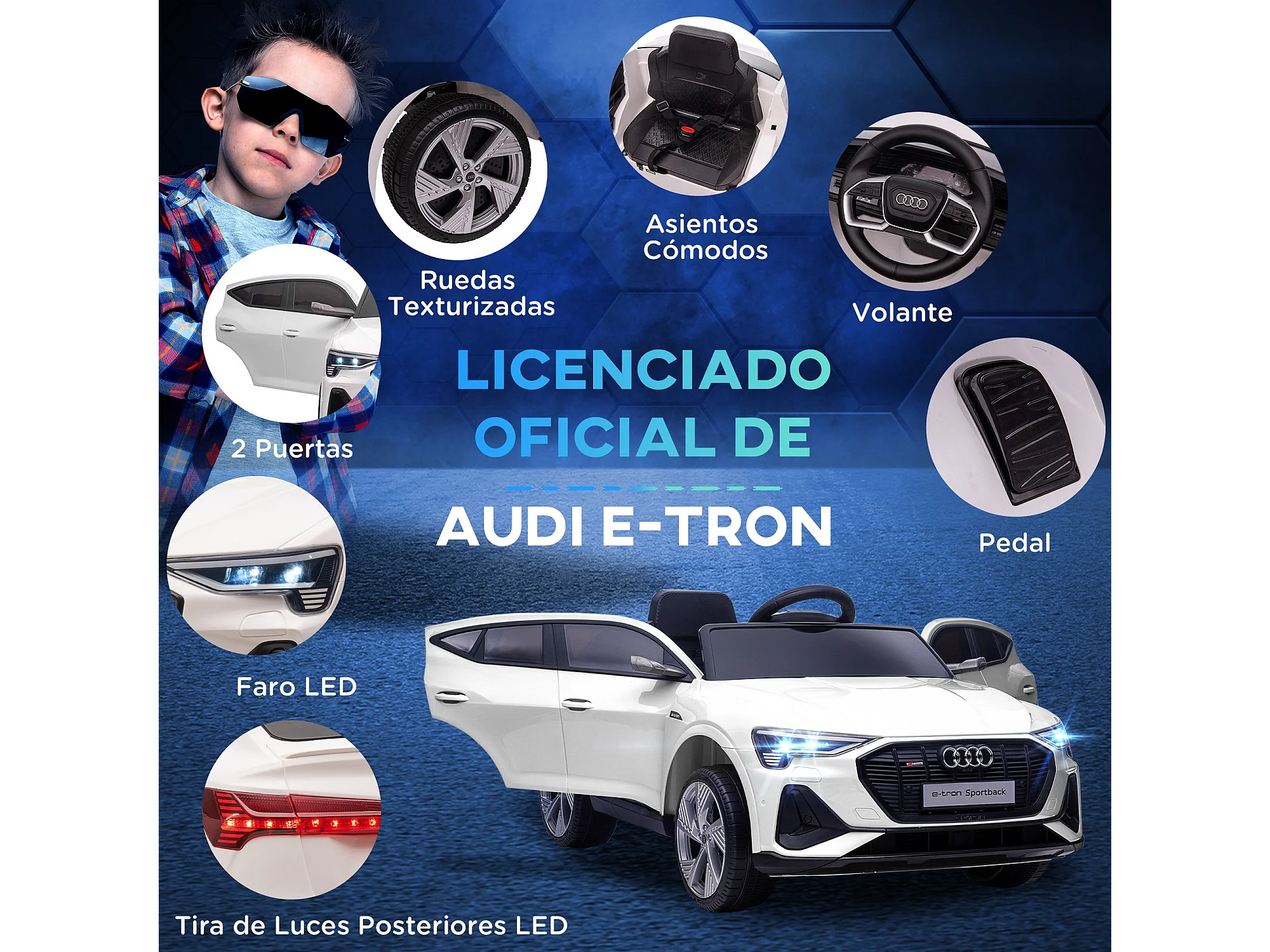Coche eléctrico infantil blanco 103x58x41 cm HOMCOM
