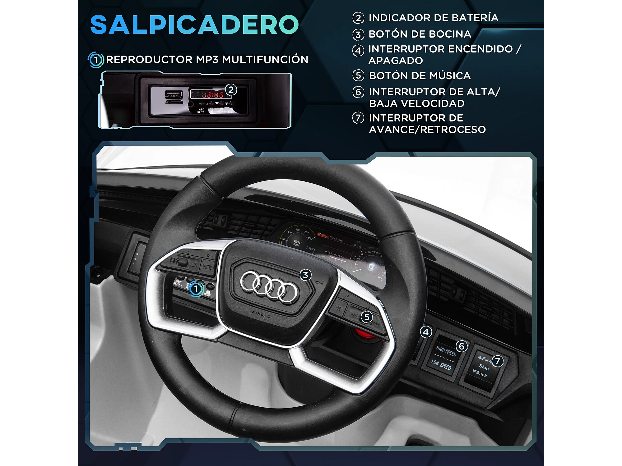 Coche eléctrico infantil blanco 102x60x44 cm HOMCOM