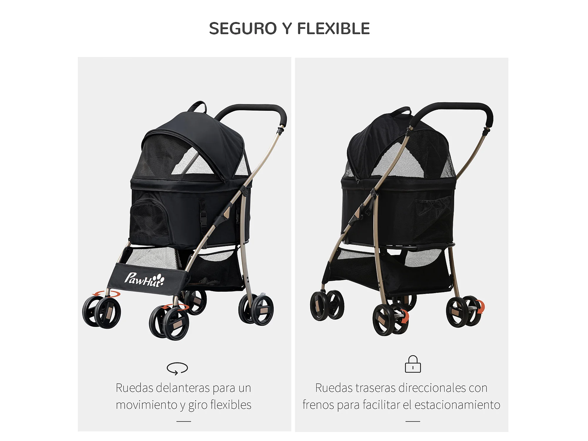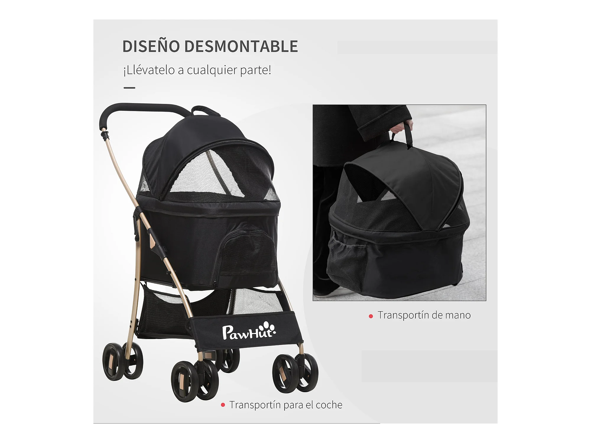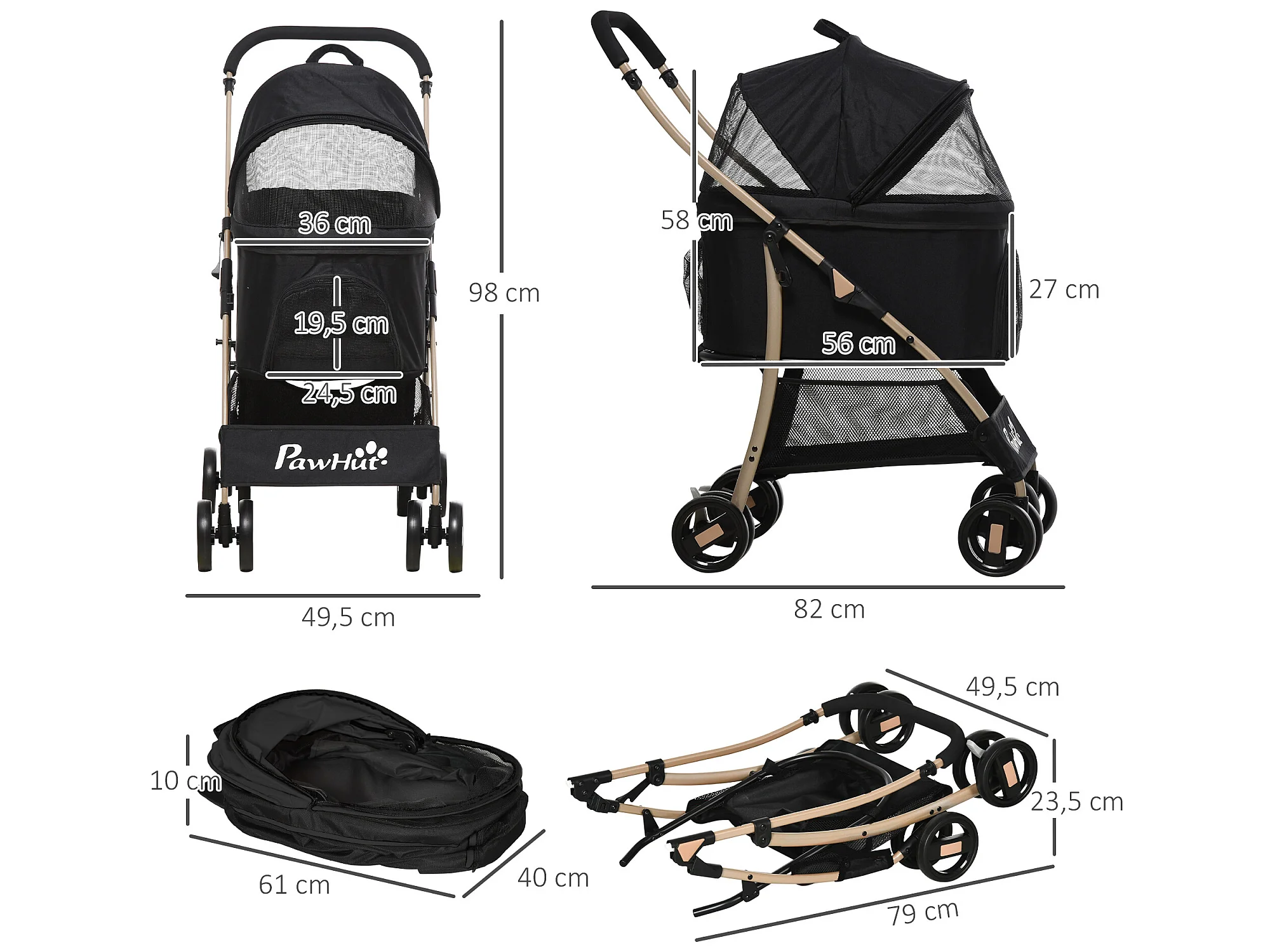 Cochecito para mascotas negro 82x49.5x98 cm PawHut