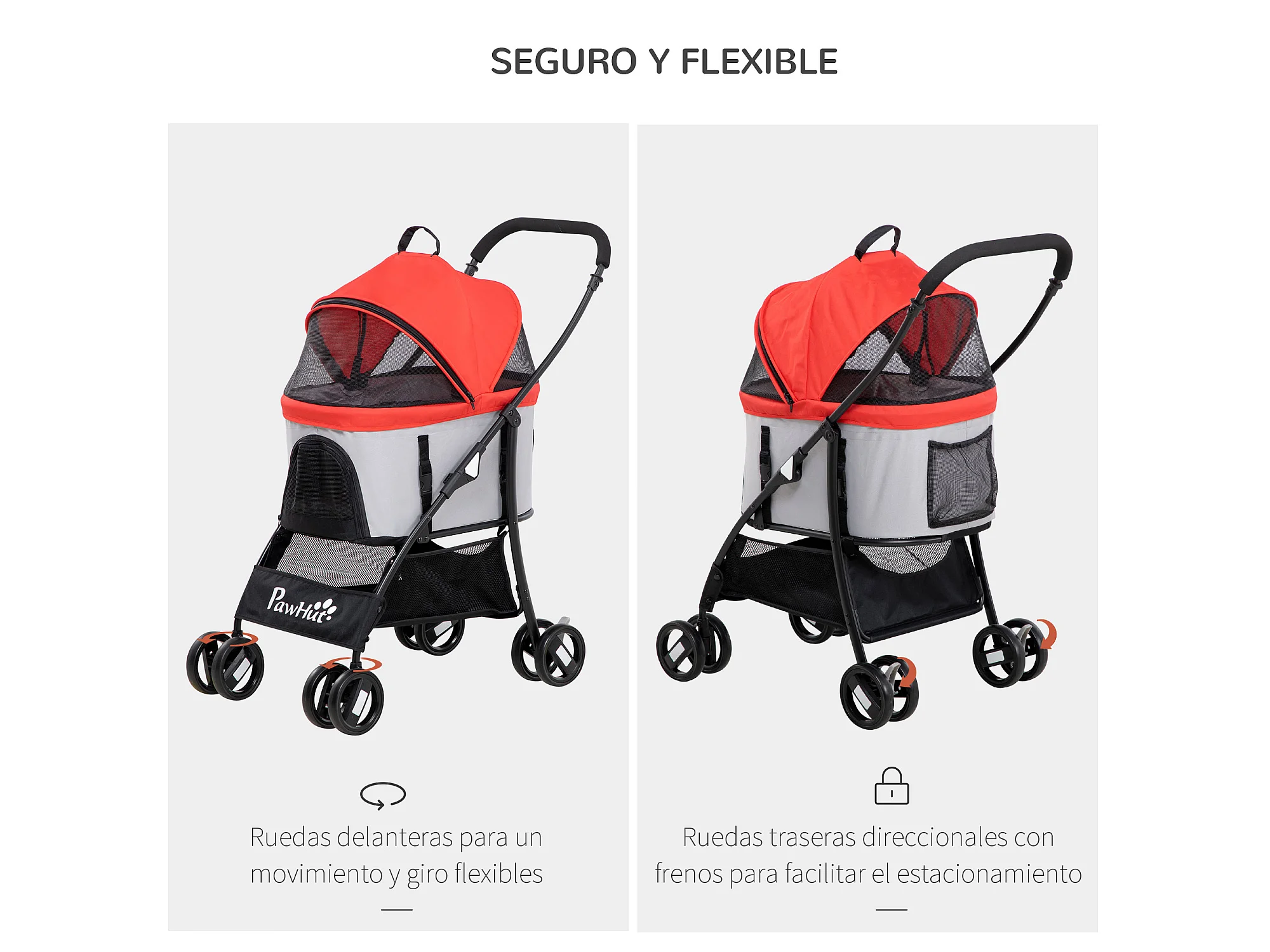 Cochecito para mascotas rojo 82x49.5x98 cm PawHut