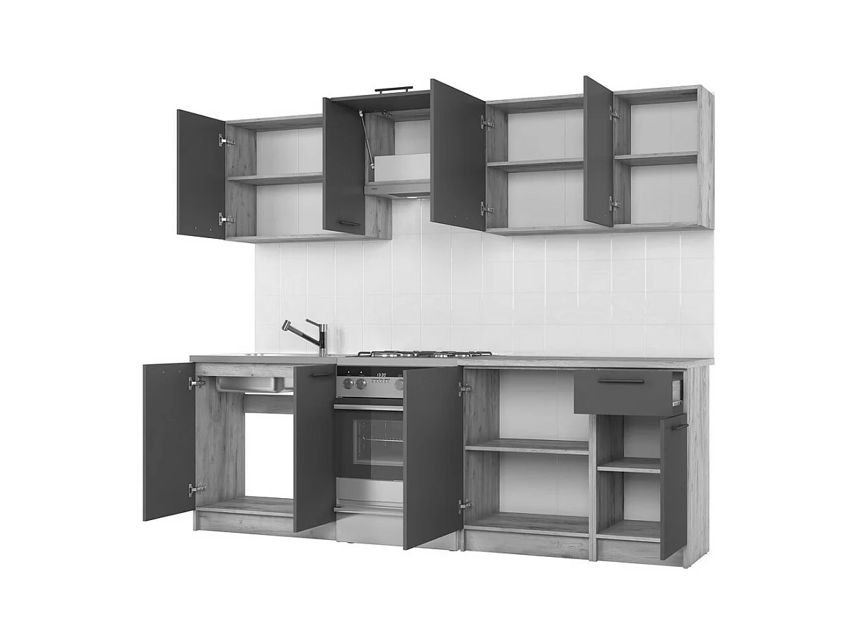 JASPE | Cocina modular + lineal completa L 200 cm 6 piezas | Encimera INCLUIDO | muebles de gabinete de cocina