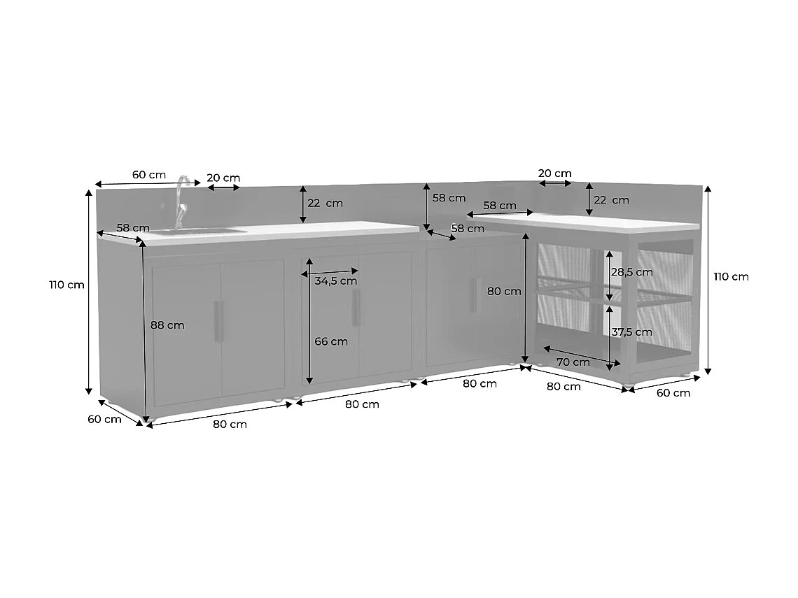 Cocina de exterior 5 módulos acero y decoración madera negro