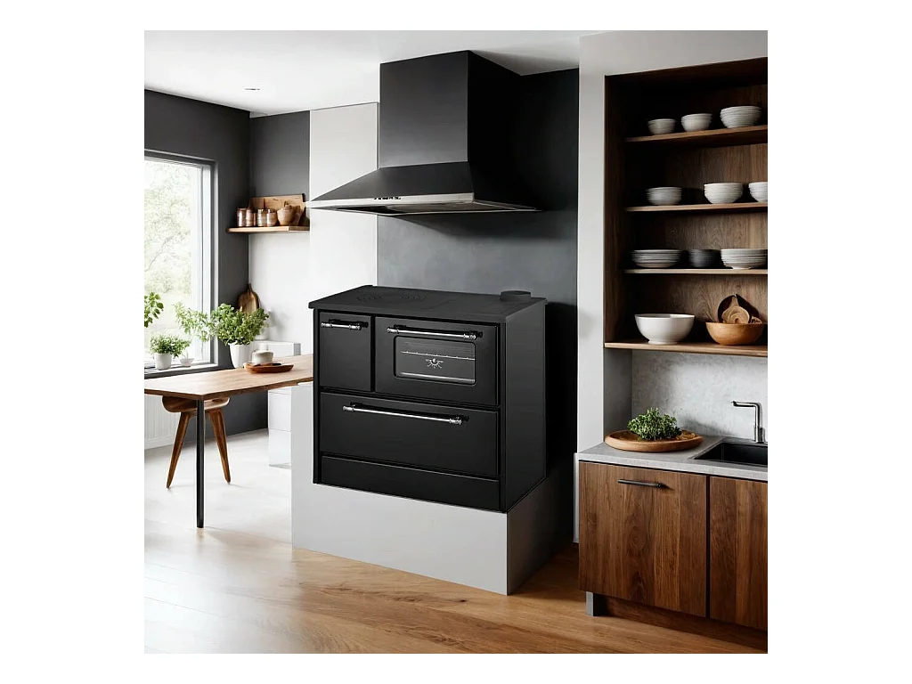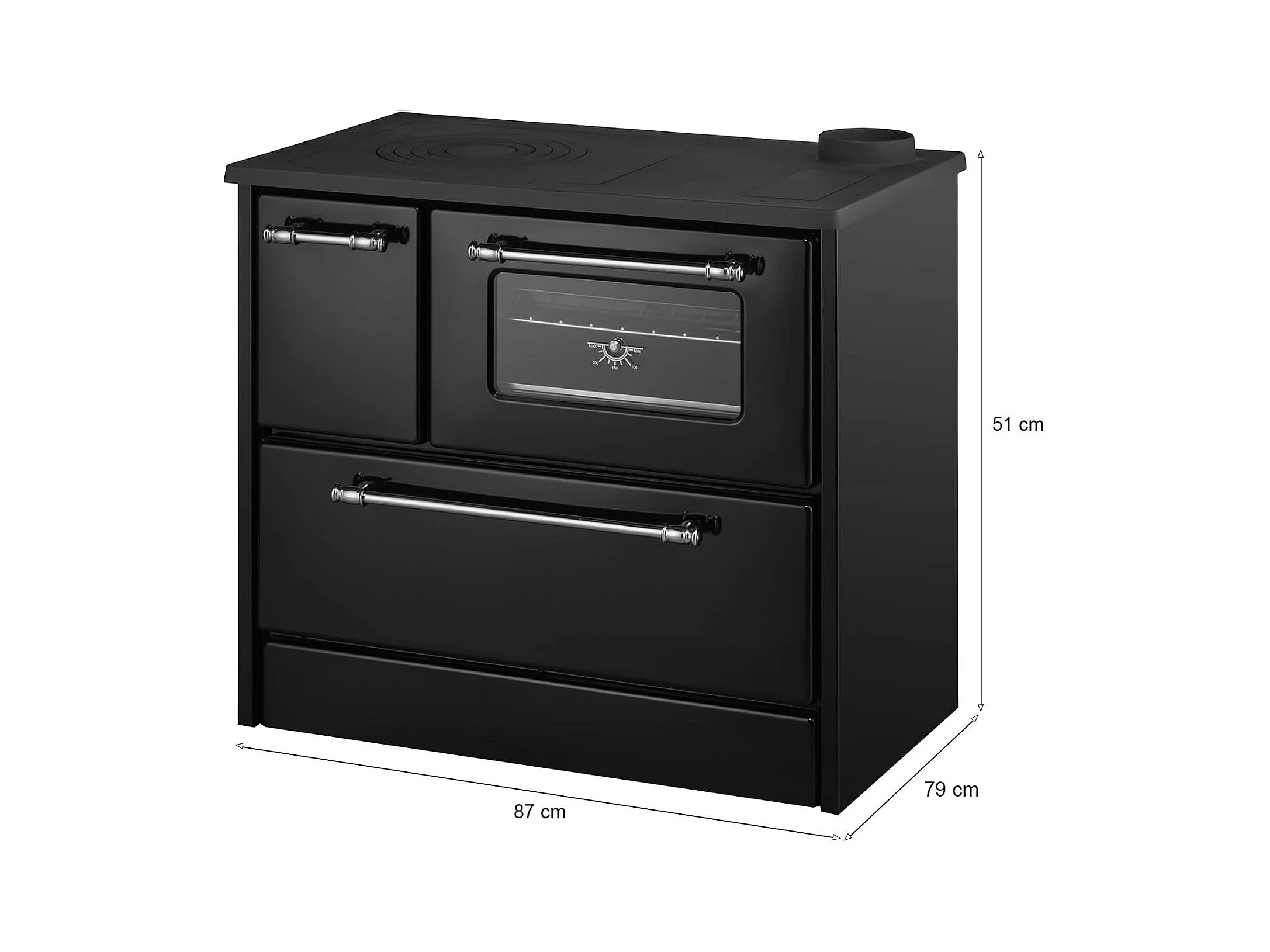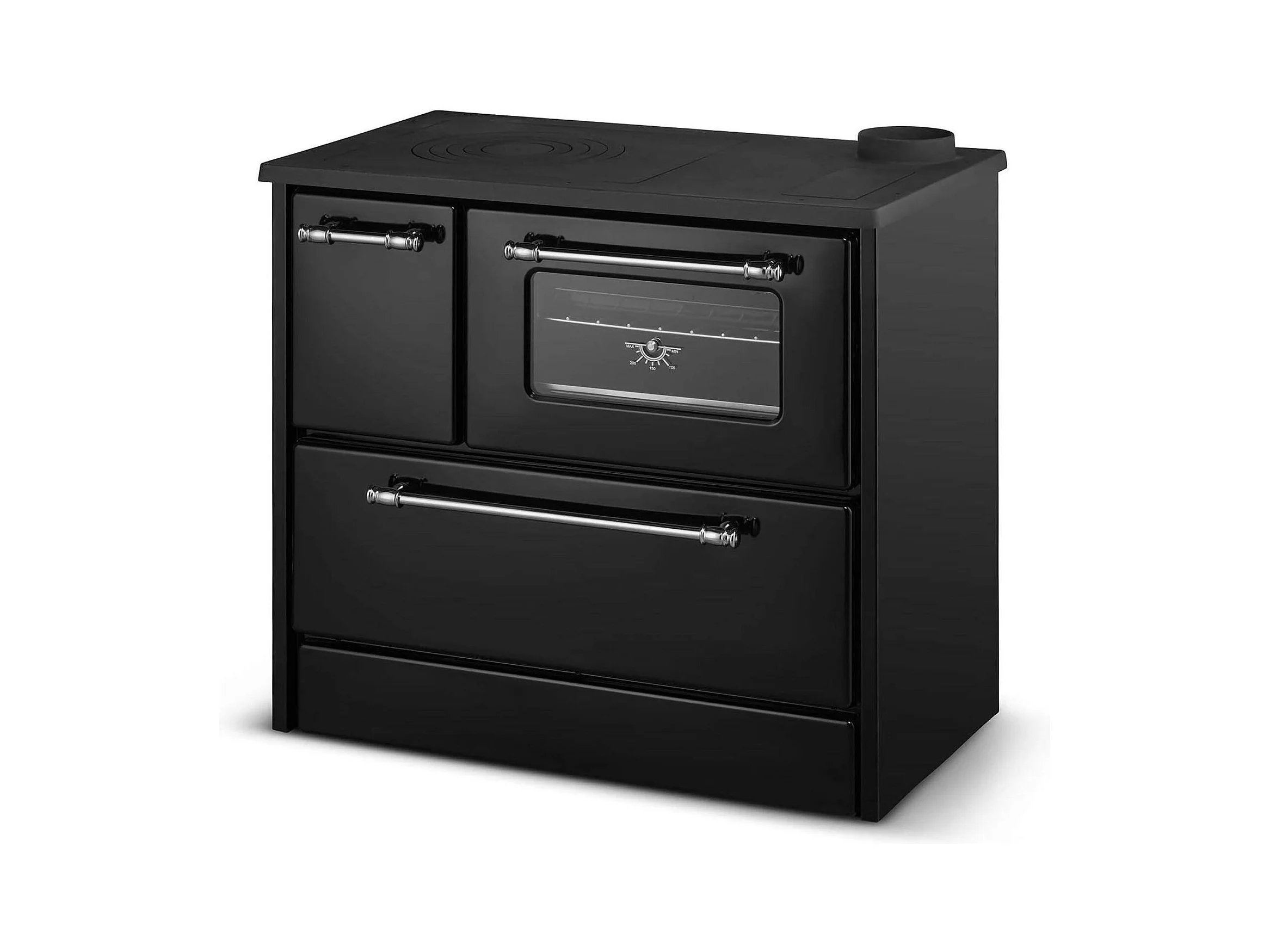 Cocina de leña Spurr, Cocina de leña, Estufa de cocina tradicional, Cocina vintage, Made in Italy, 87x79 h51 cm, Negro