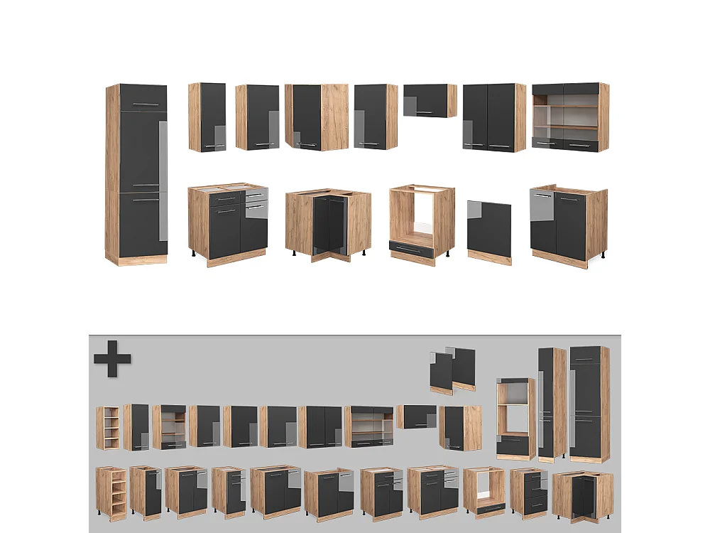 Cocina esquinera antracita brillo intenso/antracita 287x60x81.6 r-line