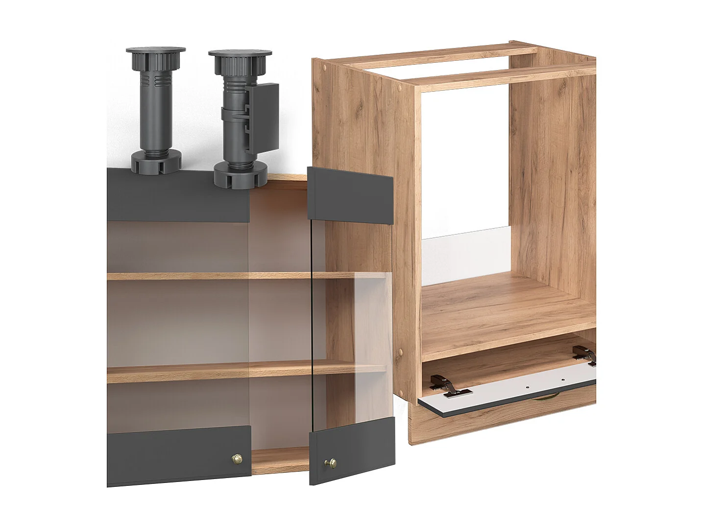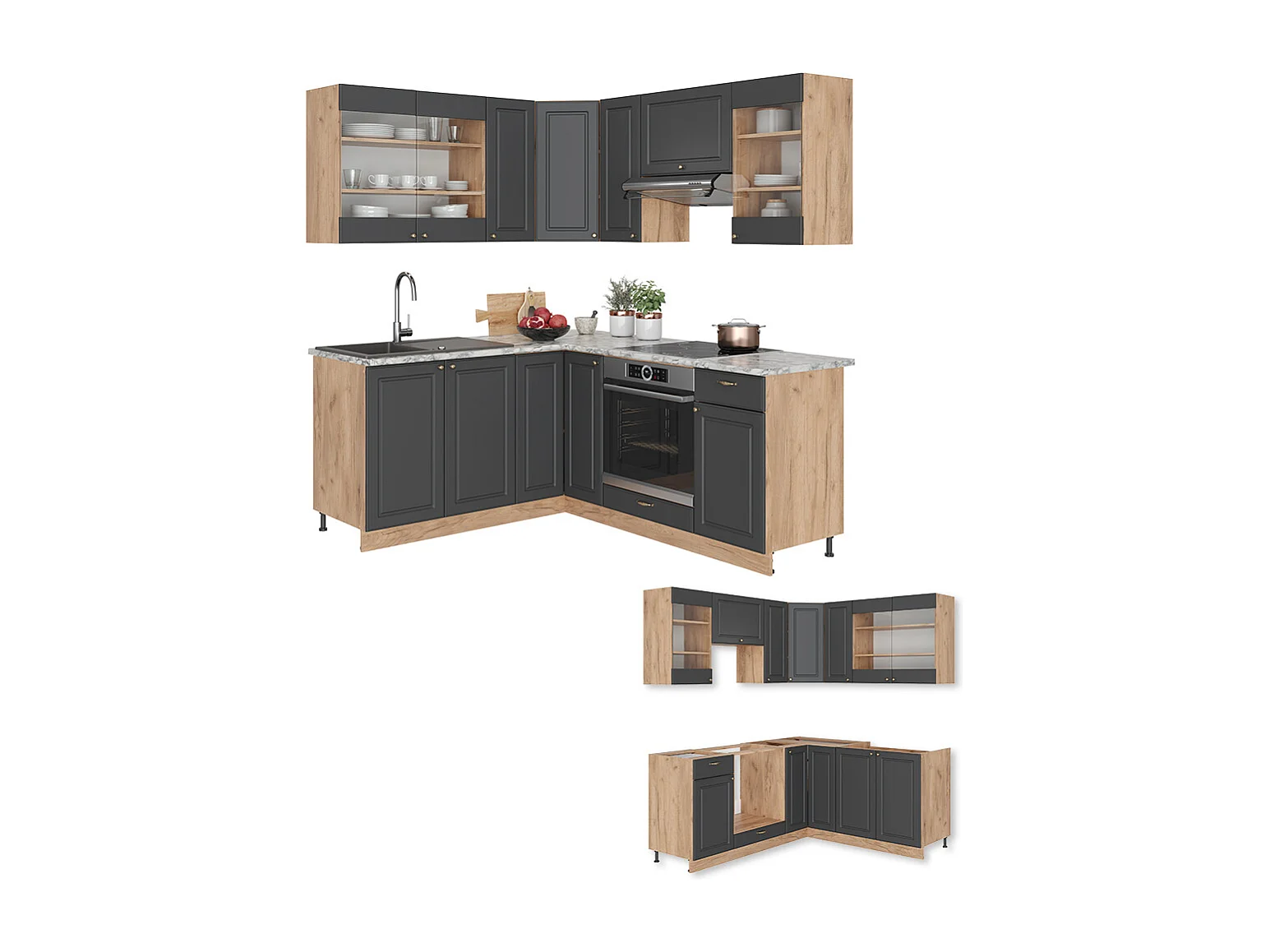 Cocina esquinera antracita casa de campo/roble kraft dorado 190x60x81.6 fame-line