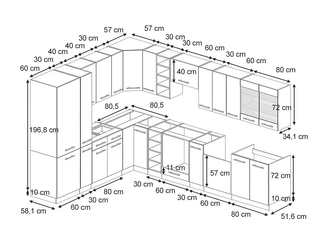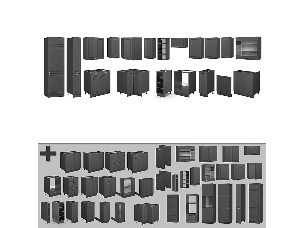 Cocina esquinera antracita-oro landhaus 347x46x81.6 fame-line