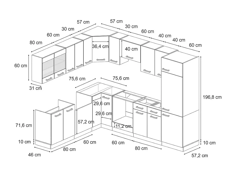 Cocina esquinera gris azulado/antracita 287x60x81.6 r-line