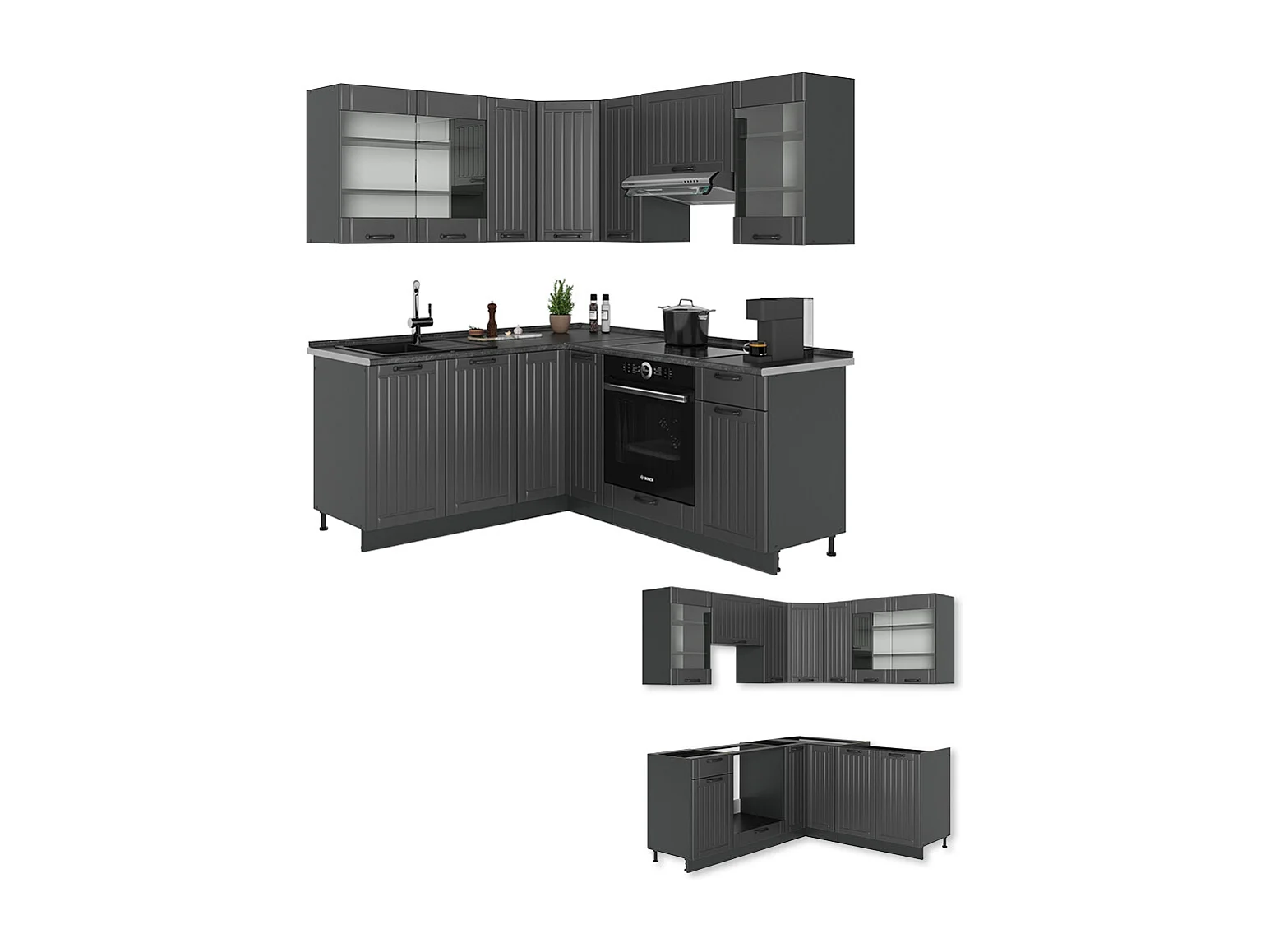 Cocina esquinera gris oscuro 190x60x81.6 fame-line