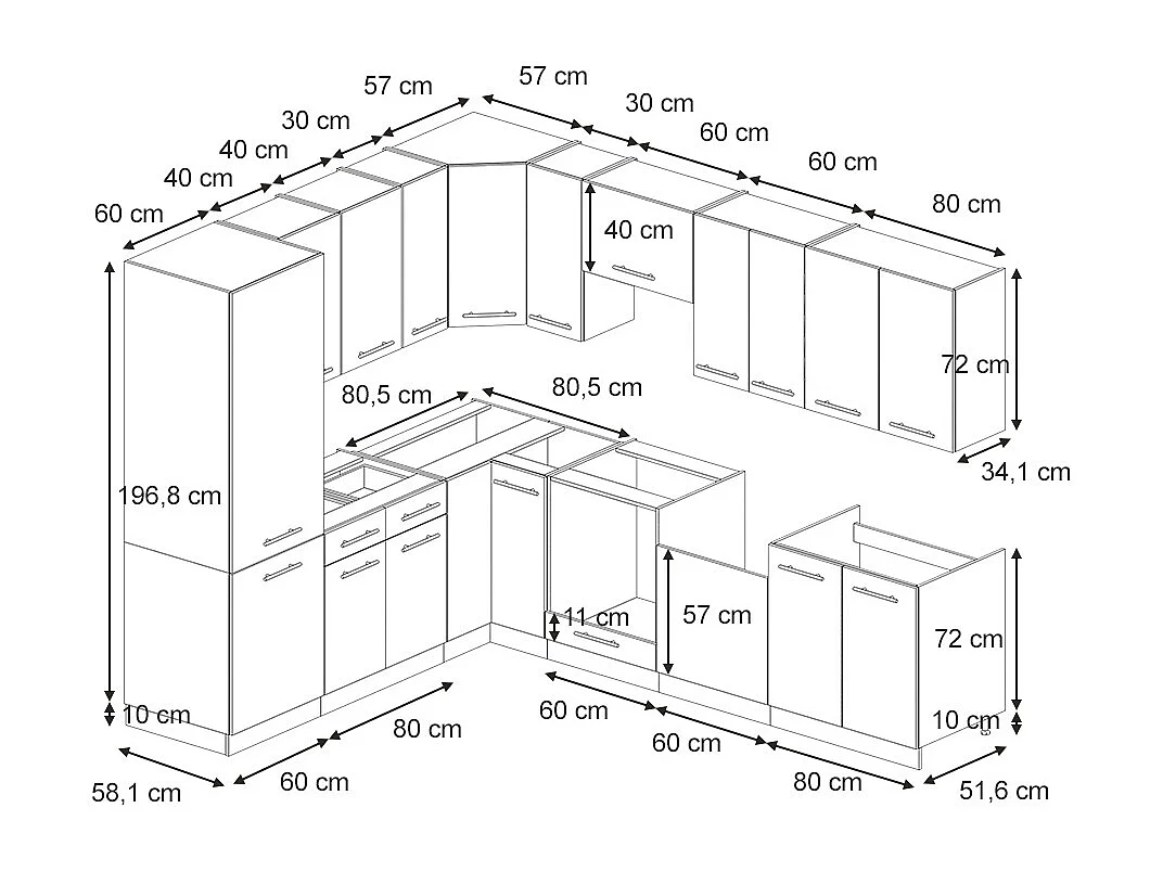Cocina esquinera sonoma 287x46x81.6 r-line