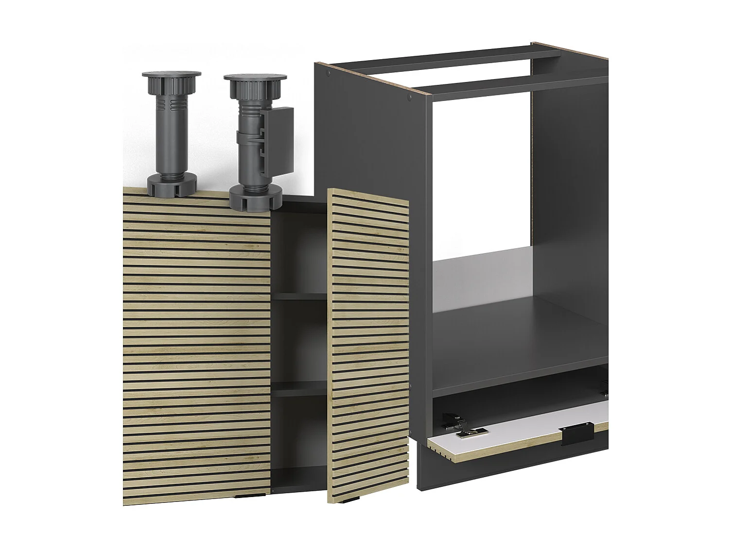 Cocina esquinera panel de roble/antracita 287x60x81.6 fame-line