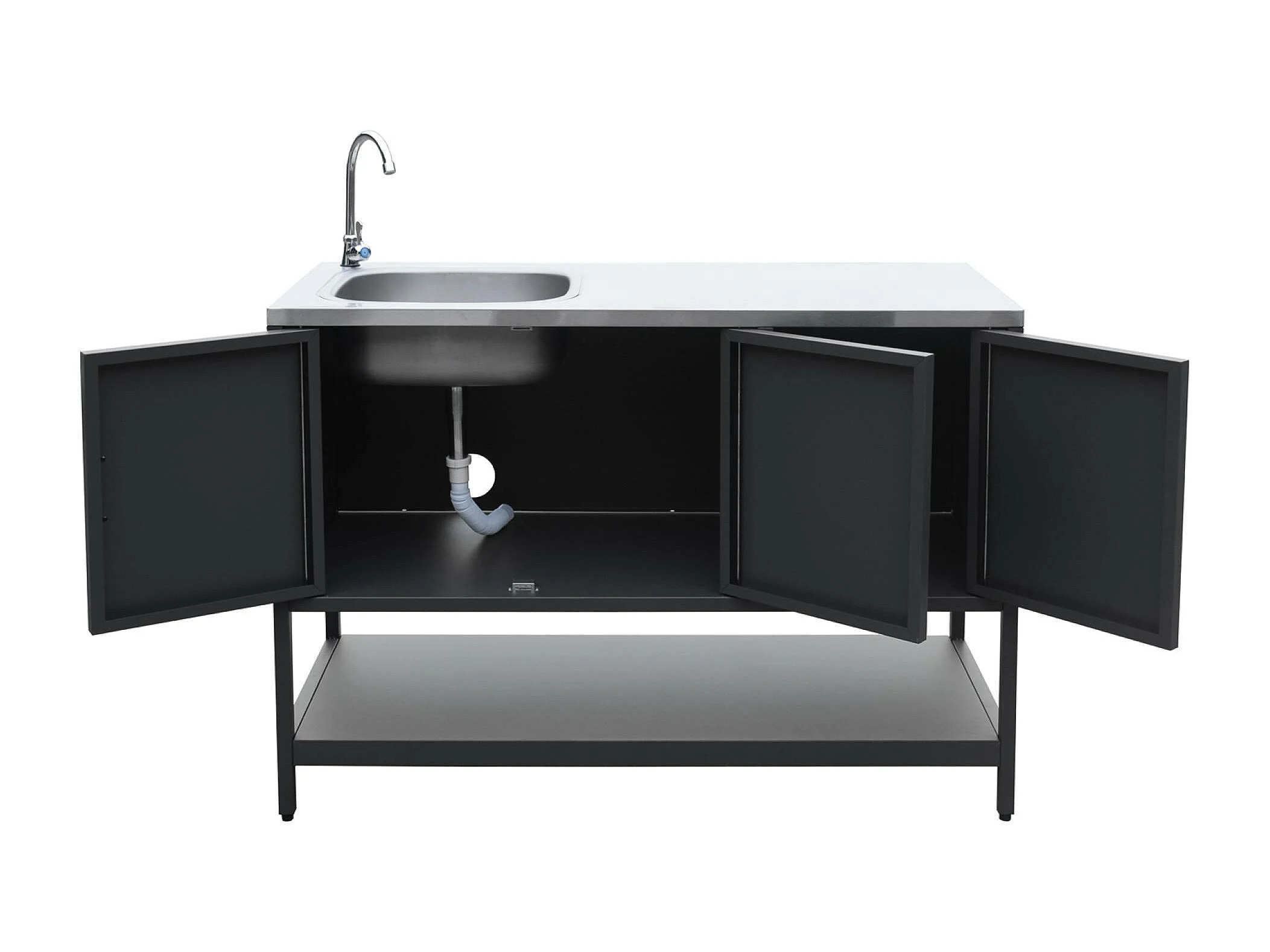 Cocina exterior de acero 1 cajón y 2 puertas, 80cm negro