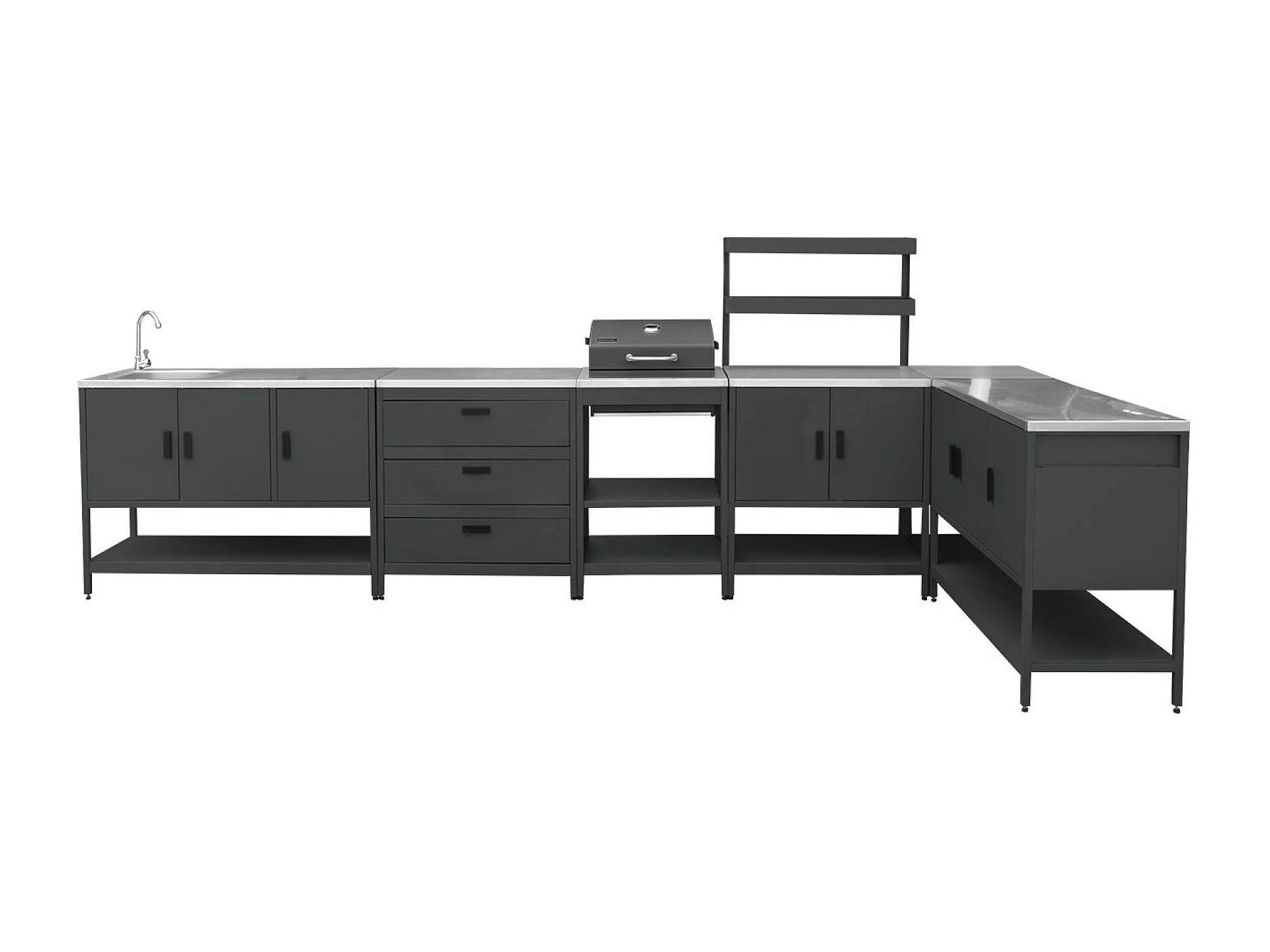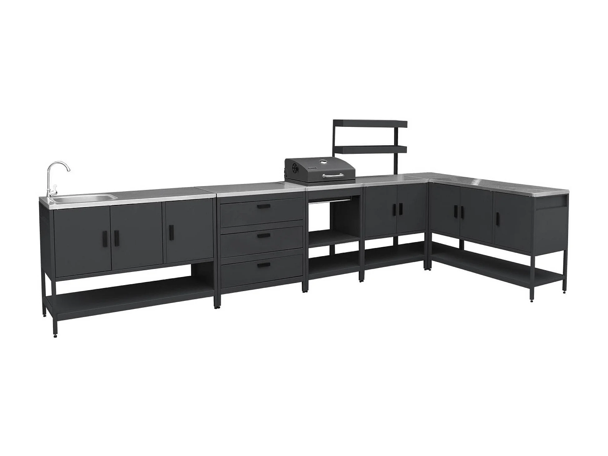 Cocina exterior 6 módulos acero inoxidable con barbacoa de carbón