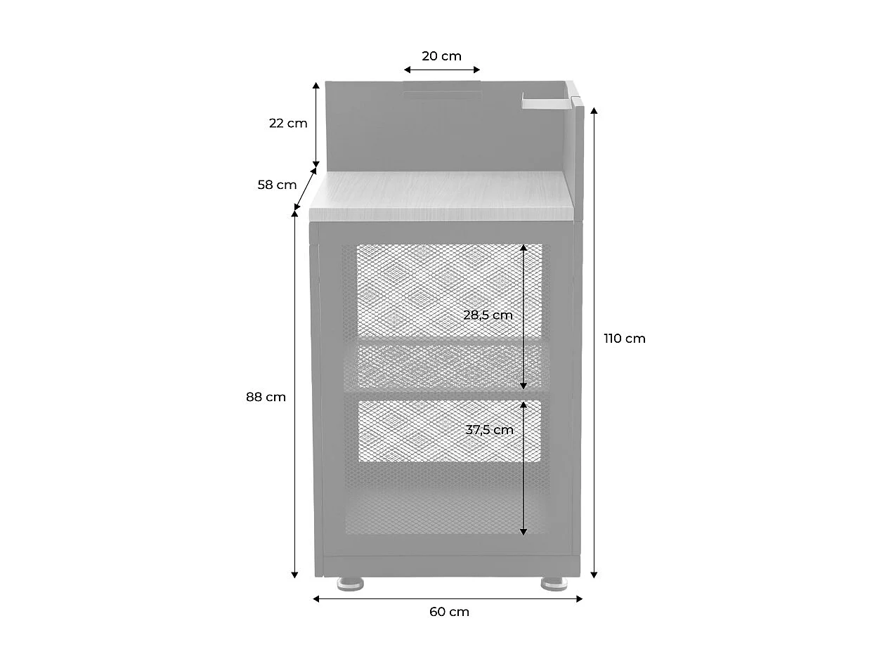 Cocina exterior de acero y decoración de madera 1 estante, 60cm negro