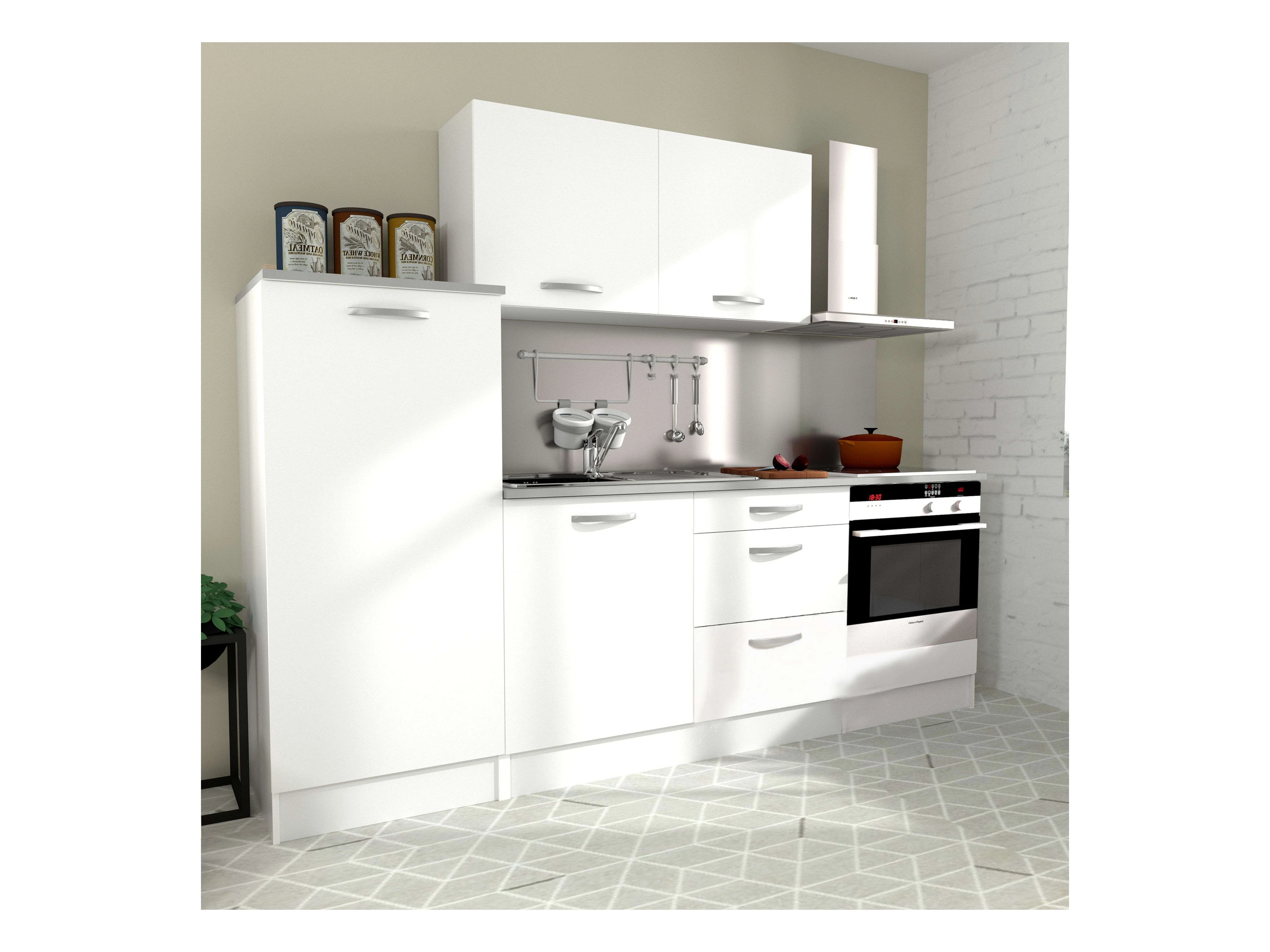 Cocina modular blanca Eko melamina con encimera, 4 módulos, 240 cm ancho